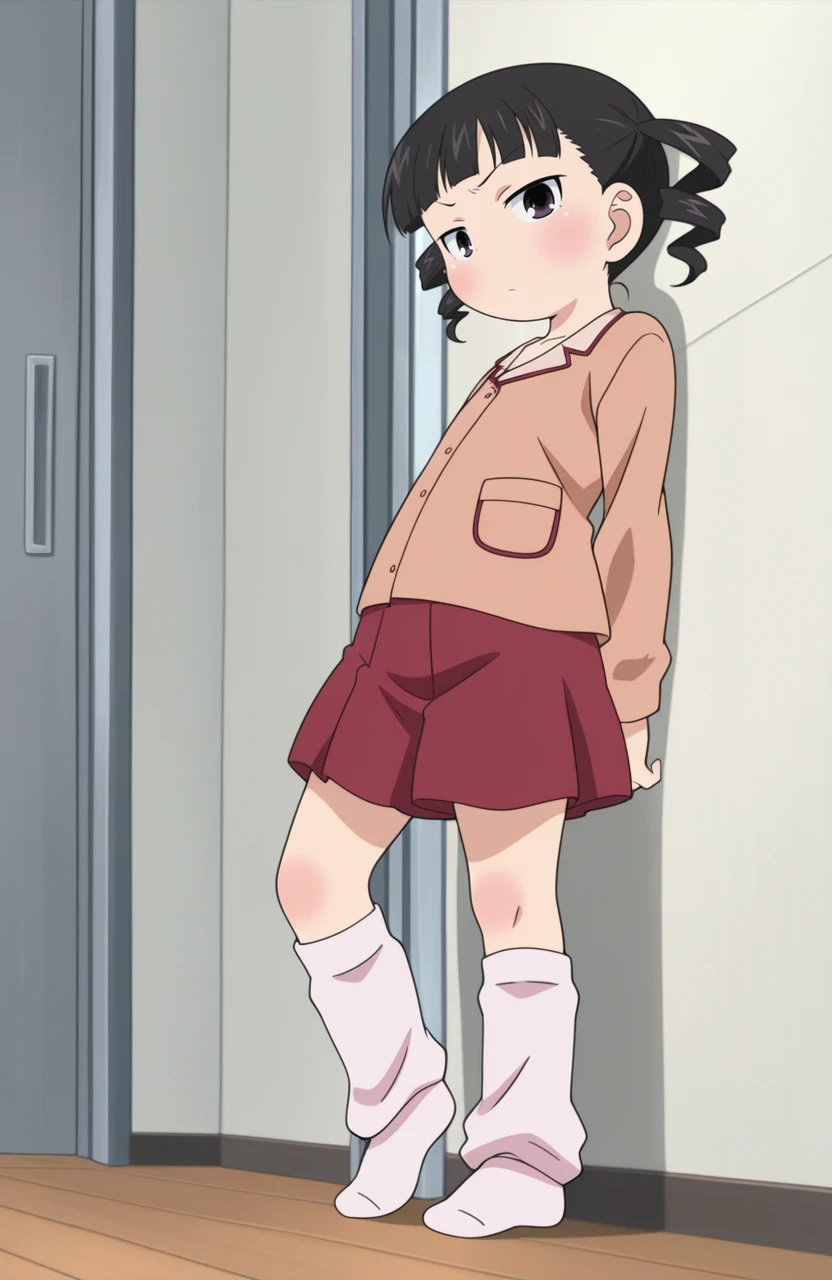 murai futaba, brown hair, short twintails, topknot, hair bobbles, brown eyes, child