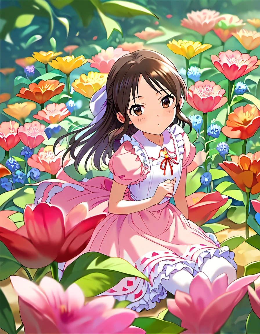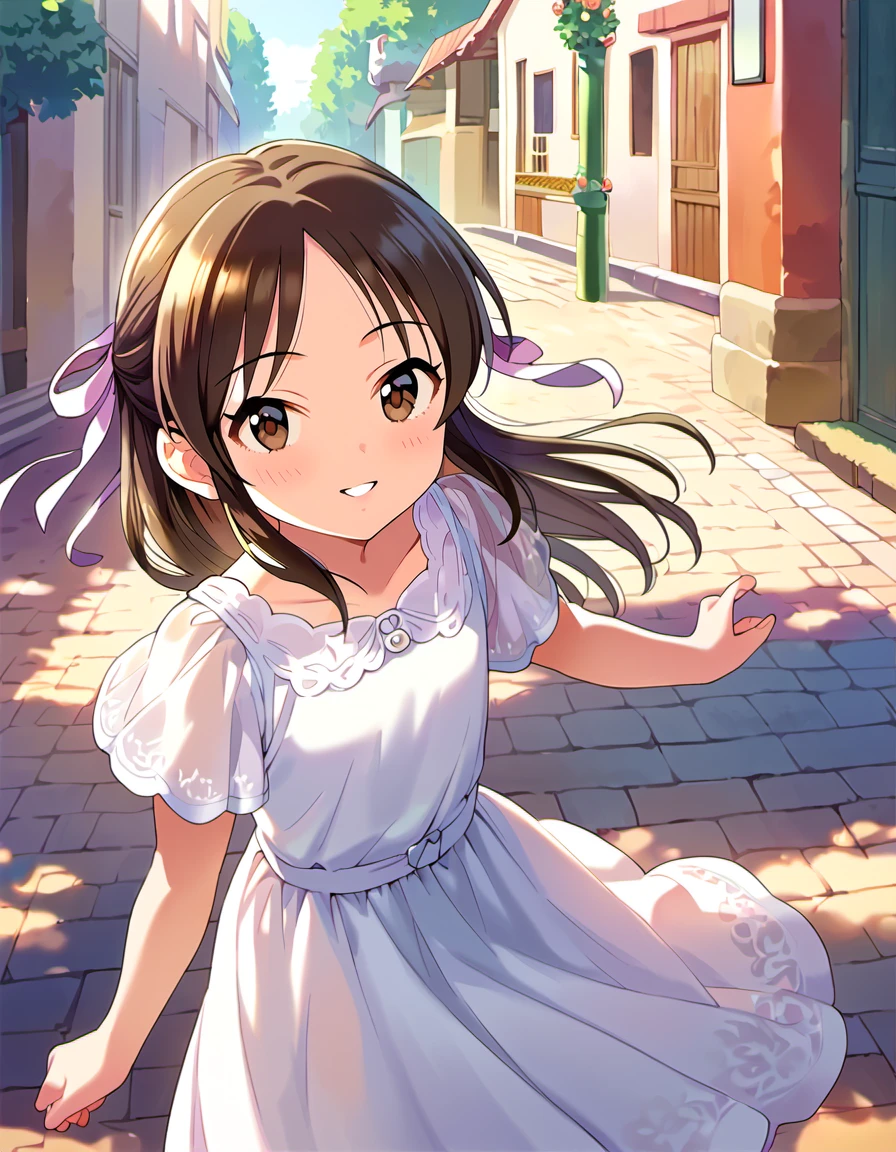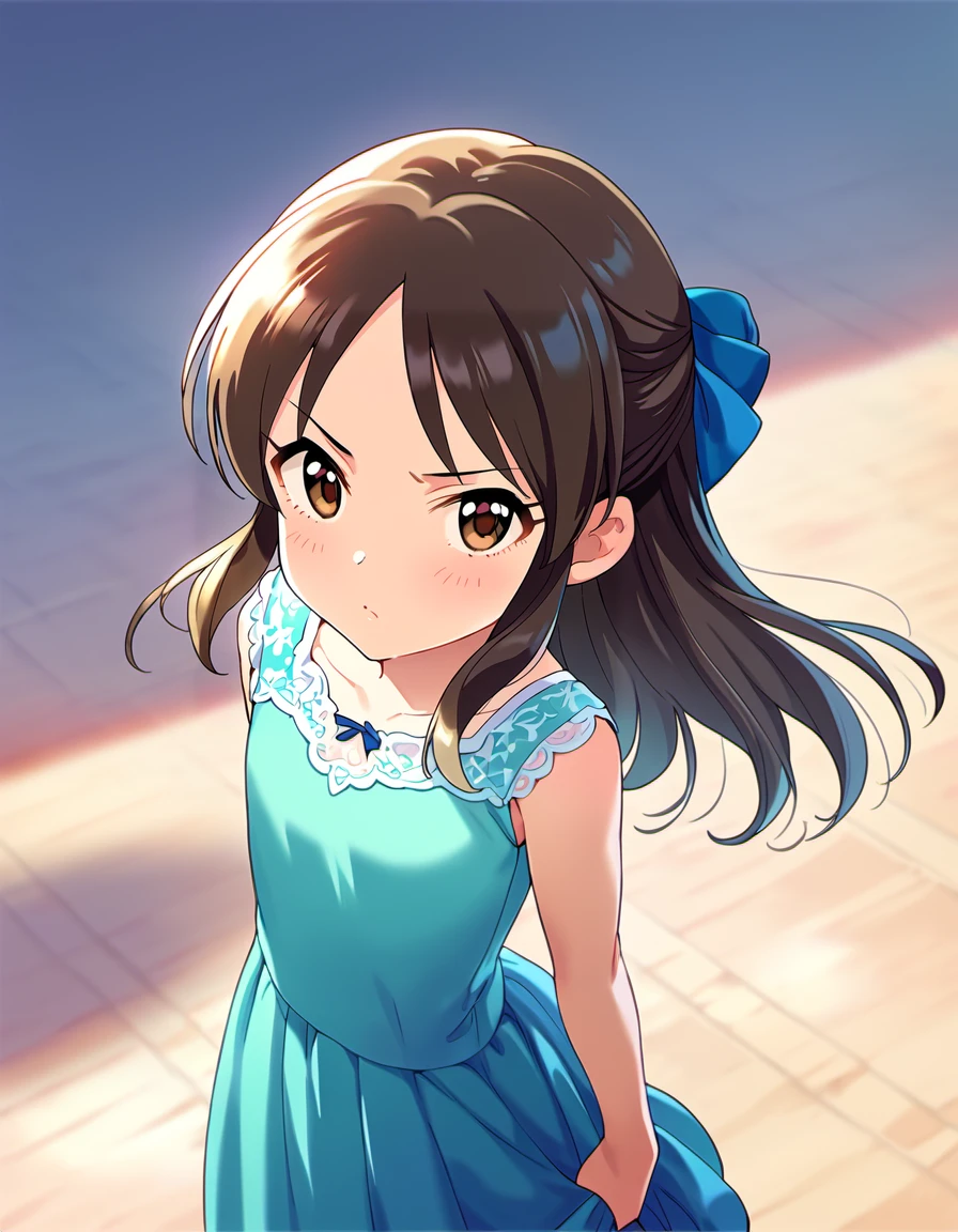 tcbnars, long hair, brown hair, parted bangs ,hair bow , brown eyes, flat chest,