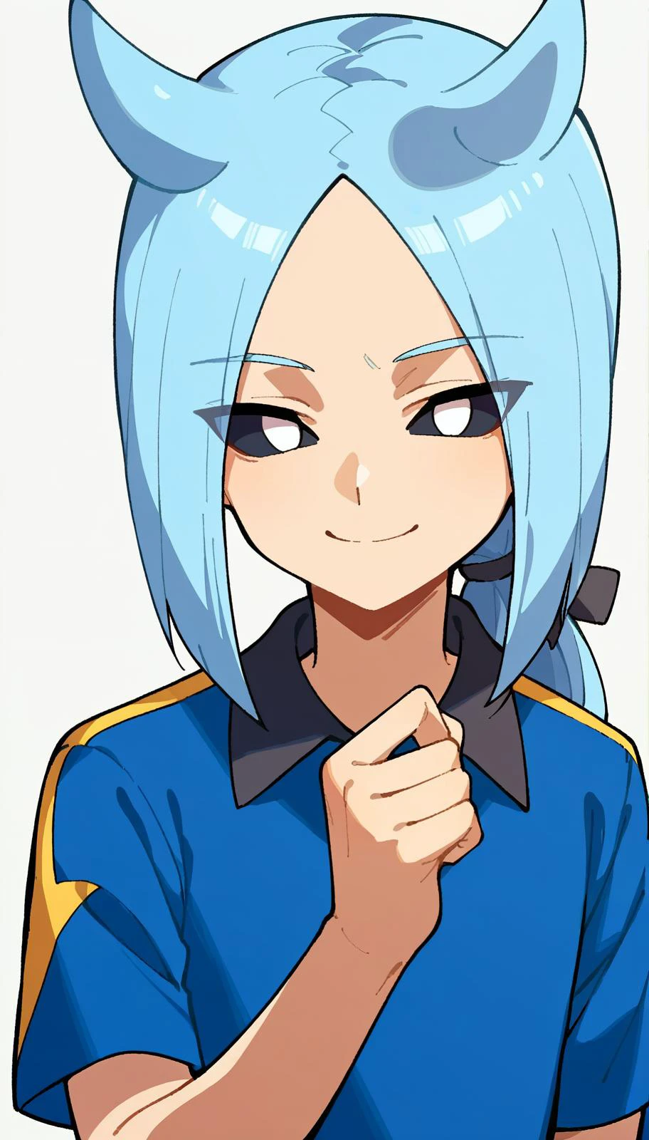mizuki, light blue hair, long hair, low ponytail, black sclera, white eyes, no pupils