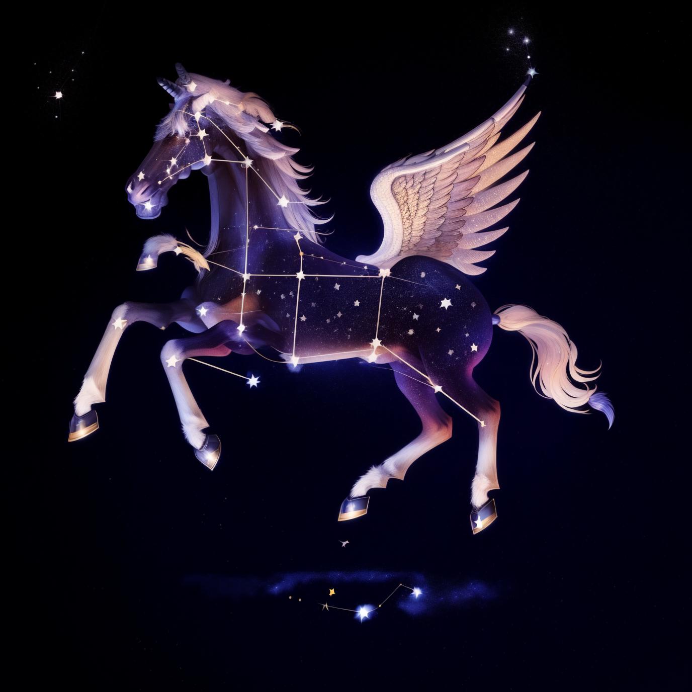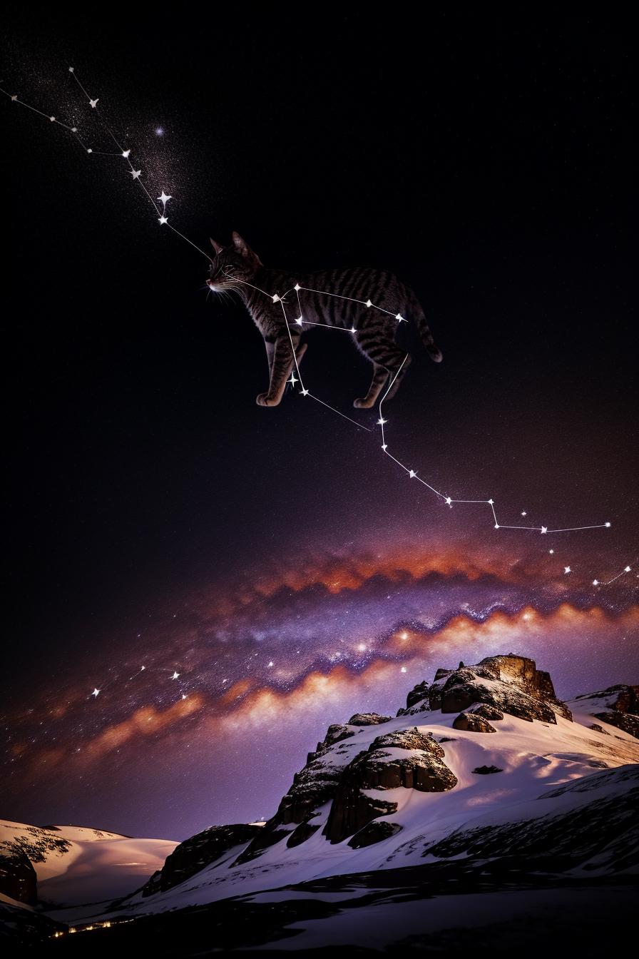 This lora can generate zodiac constellation with animal outline with it, but do not expect accurate zodiac sign or any mythical creature. It can also generate photo with mountain and scenery, but it only works without the animal outline for the time being, if you wish to have it, you can consider inapinting.