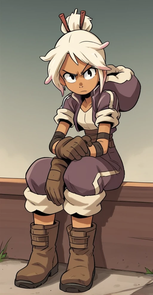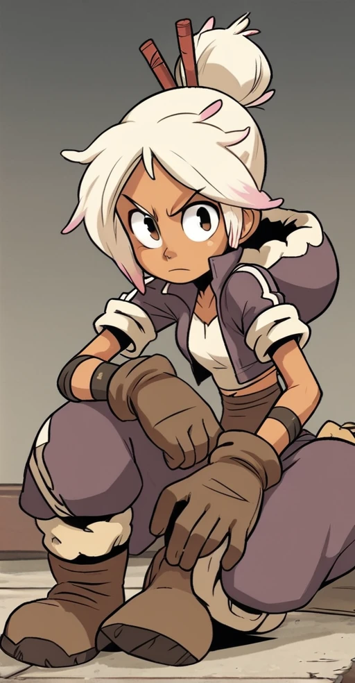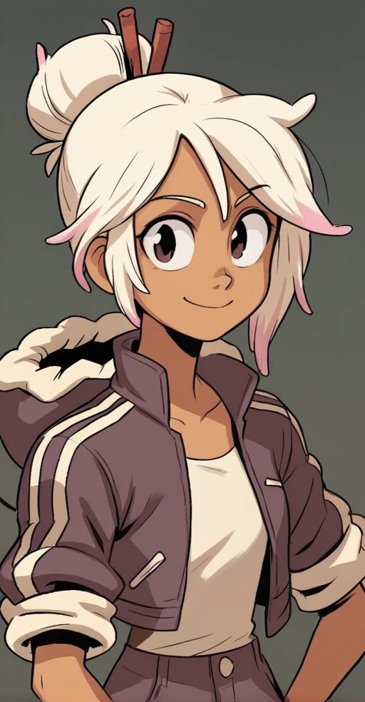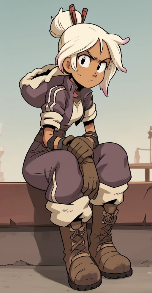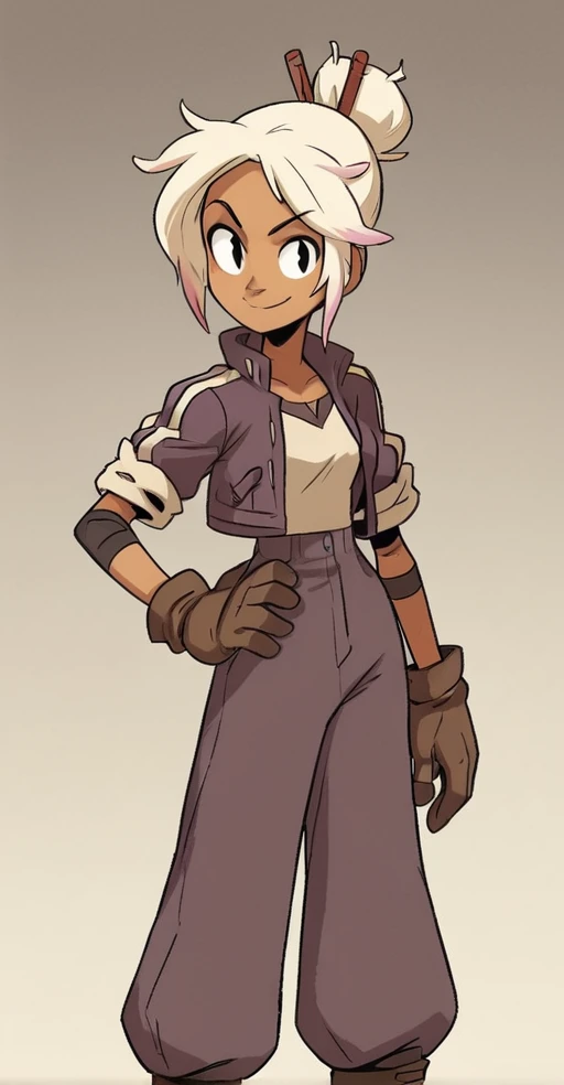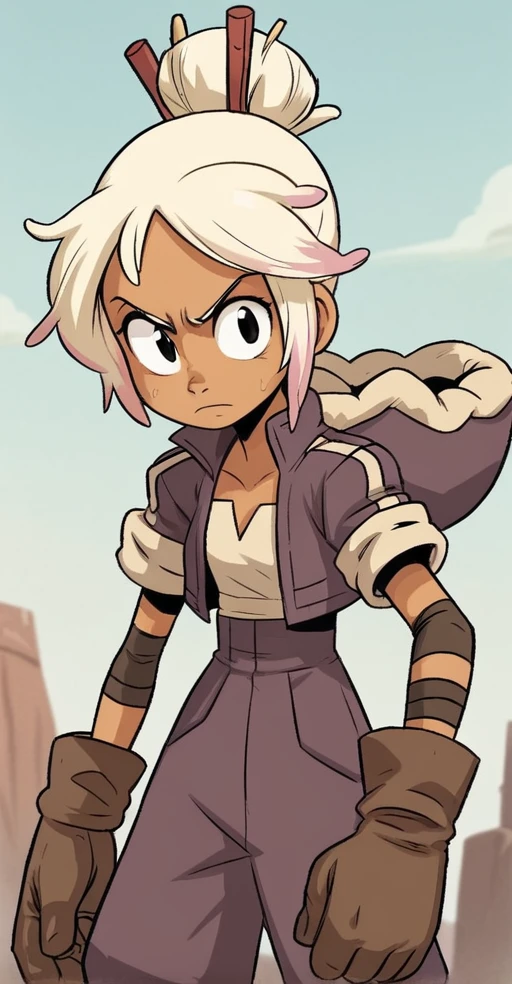 Character lora of Dee Diesel from the comic Tyson Hesse's Diesel: Ignitionrecommended tags: score_9, 1girl, blonde hair, white hair, multicolored hair, hair bun, hair stick, jacket, brown gloves, dark skin, dark-skinned female,