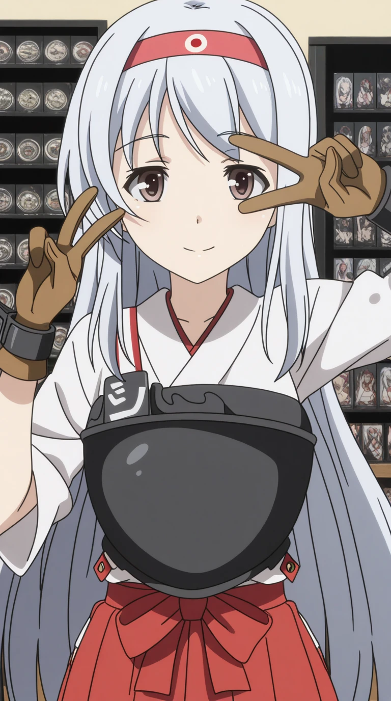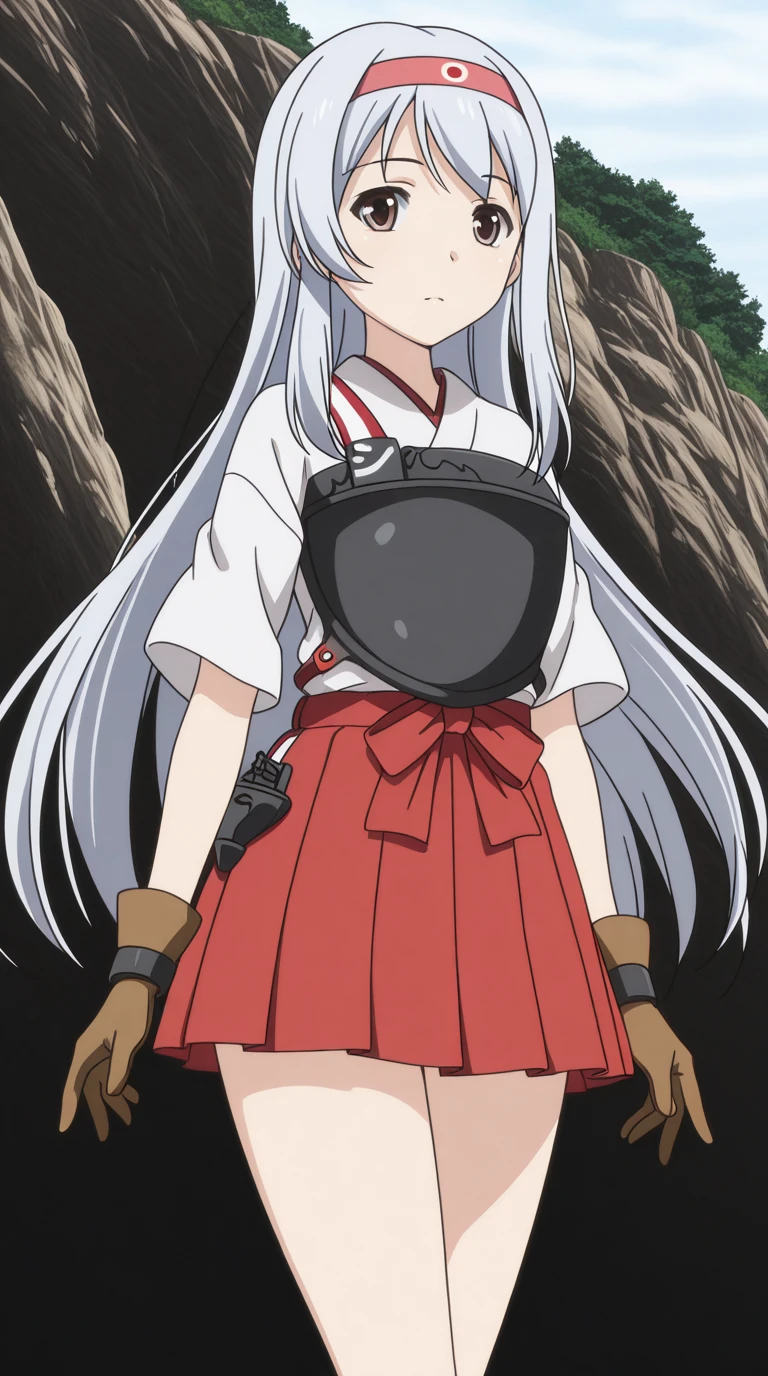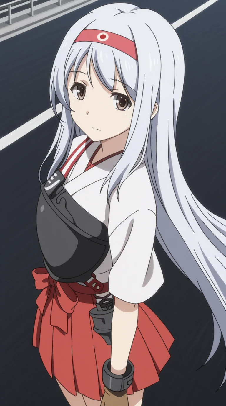 shoukaku, shoukaku (kancolle), long hair, brown eyes, white hair, grey hair, hairband, headband, mature female, small , anime screencap