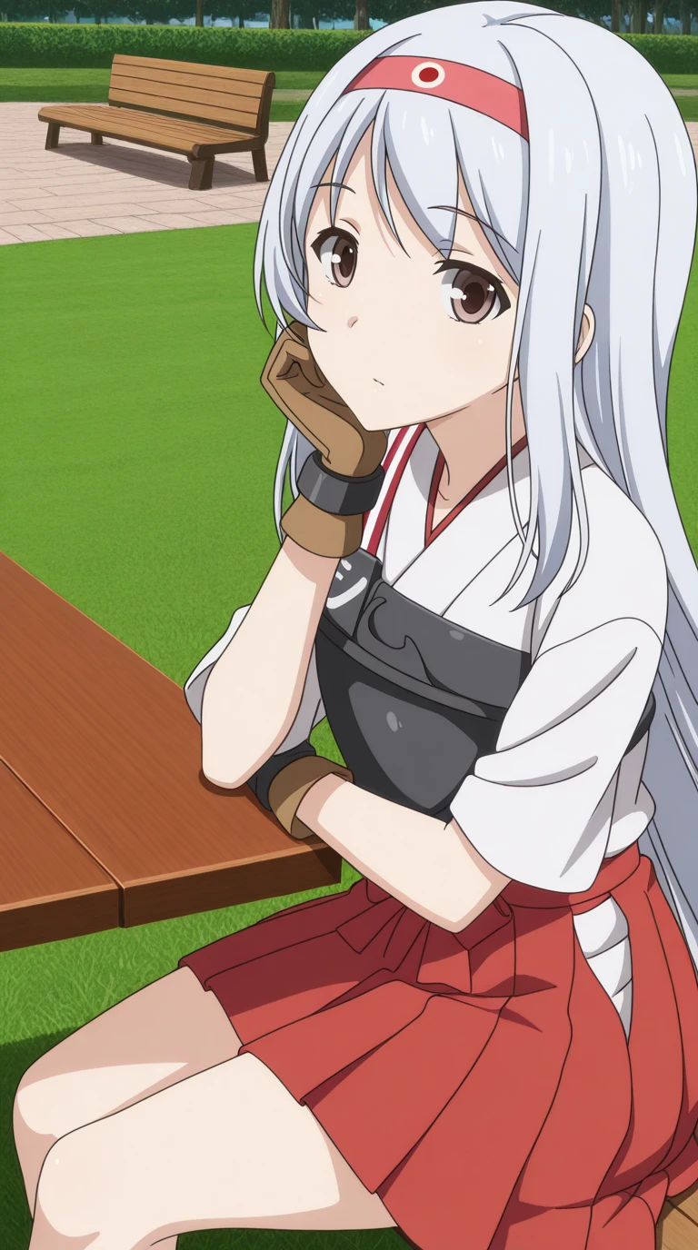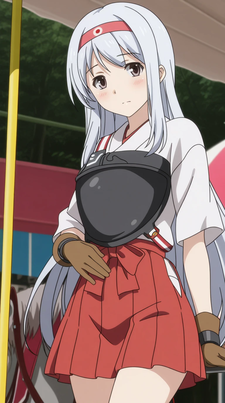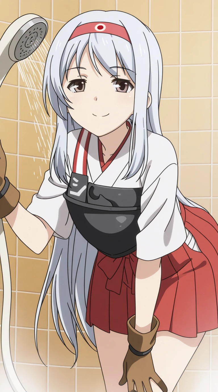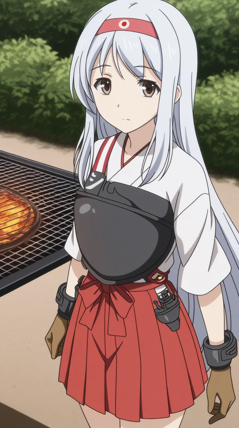 shoukaku, shoukaku (kancolle), long hair, brown eyes, white hair, grey hair, hairband, headband, mature female, small , anime screencap