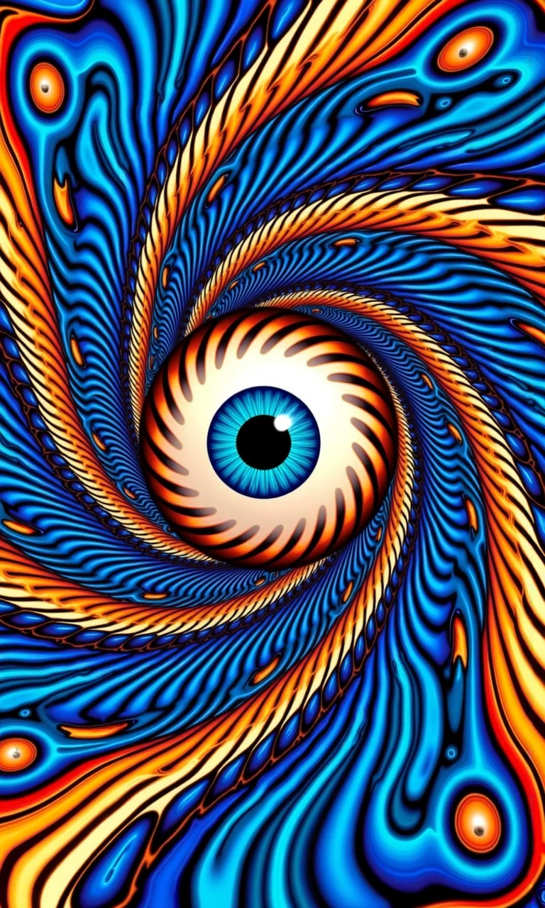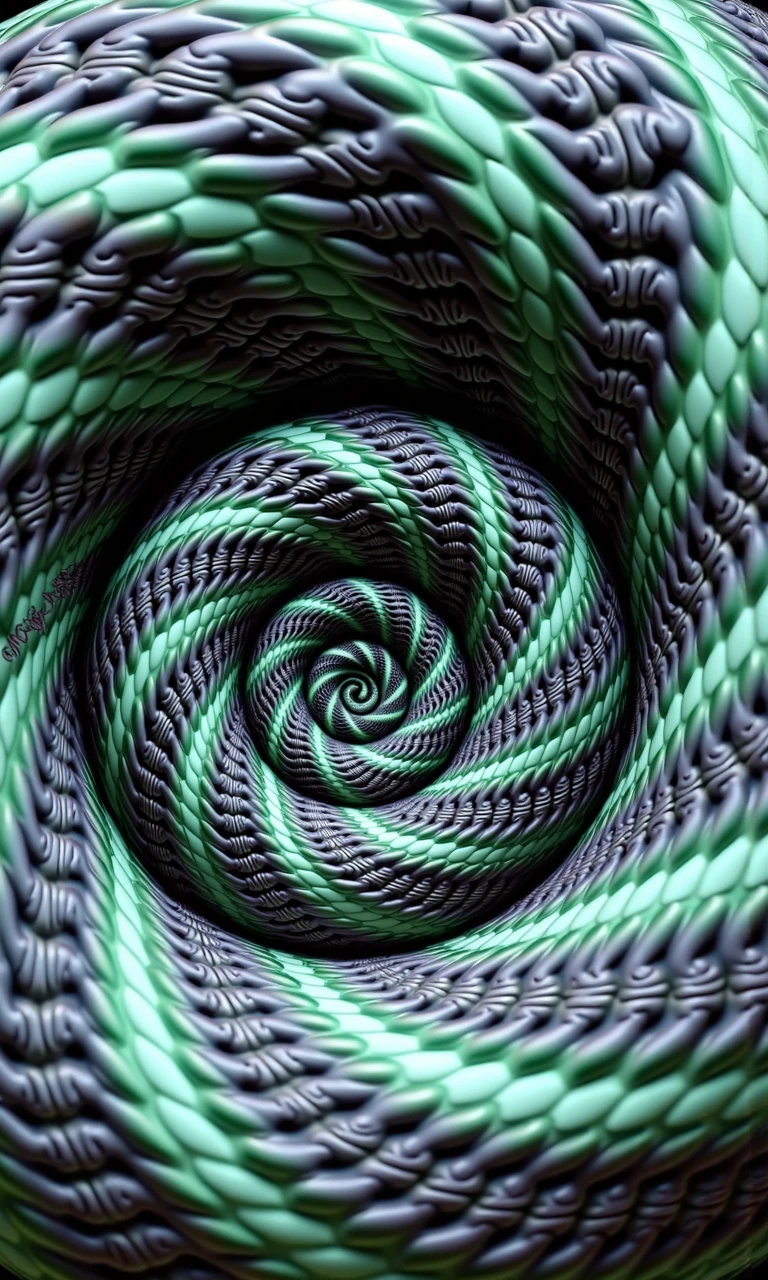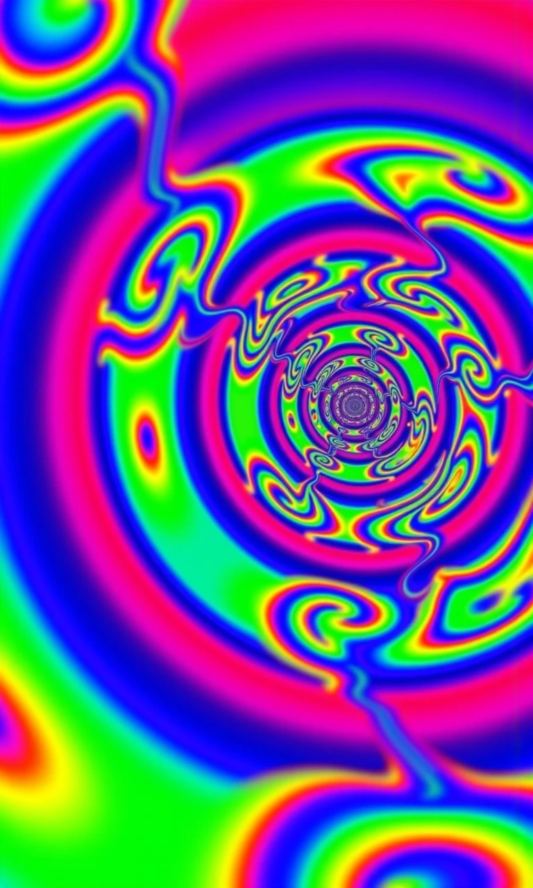 trained on 32 OP art images, mostly wiggling spirals and contrasting color patterns.