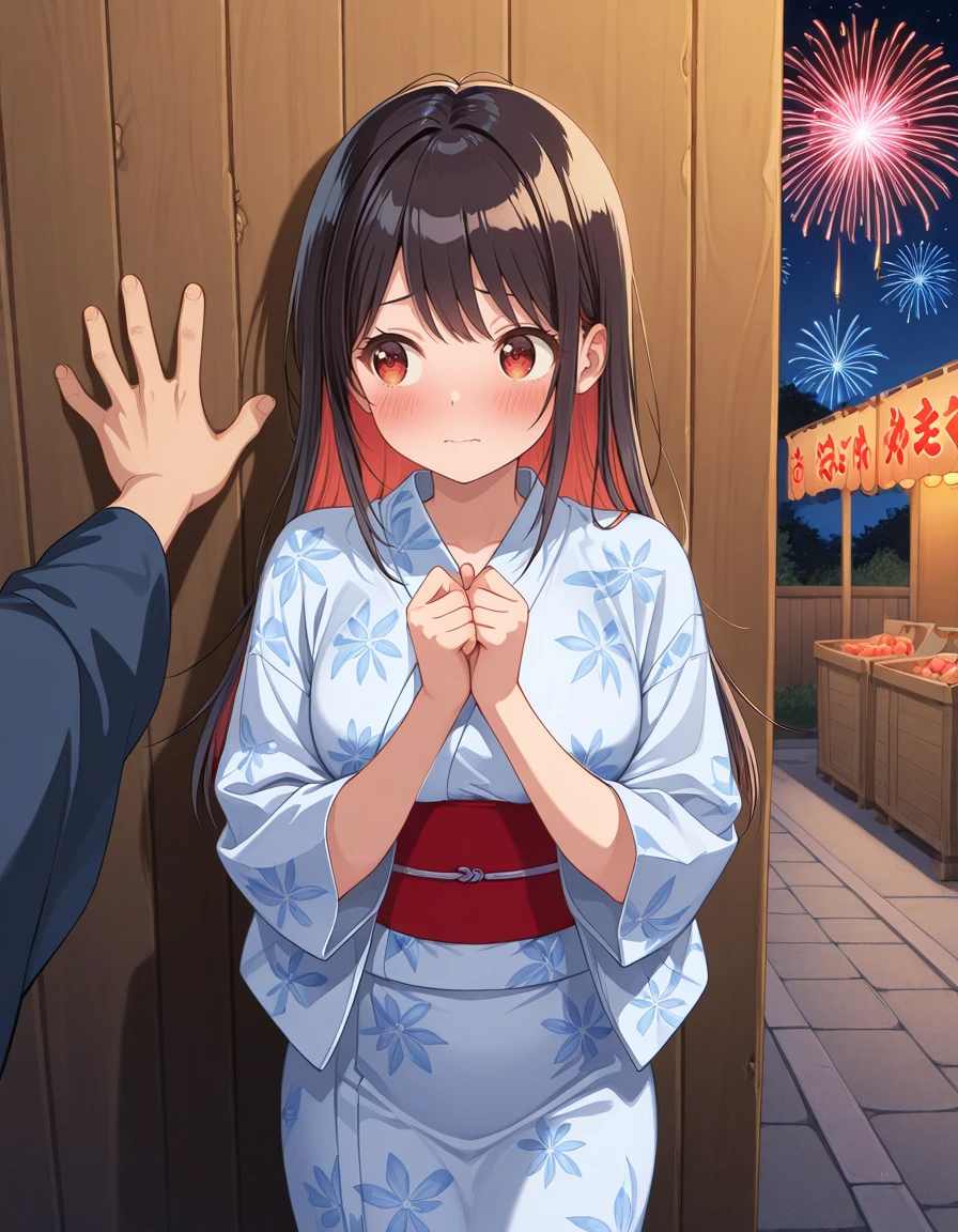 <lora:shinobu_uzuki-mayonaka_heart_tune-s1-v3-ixl-anime-soralz:1>, shinobu uzuki (mayonaka heart tune), long hair, black hair, multicolored hair, colored inner hair, red hair, red eyes