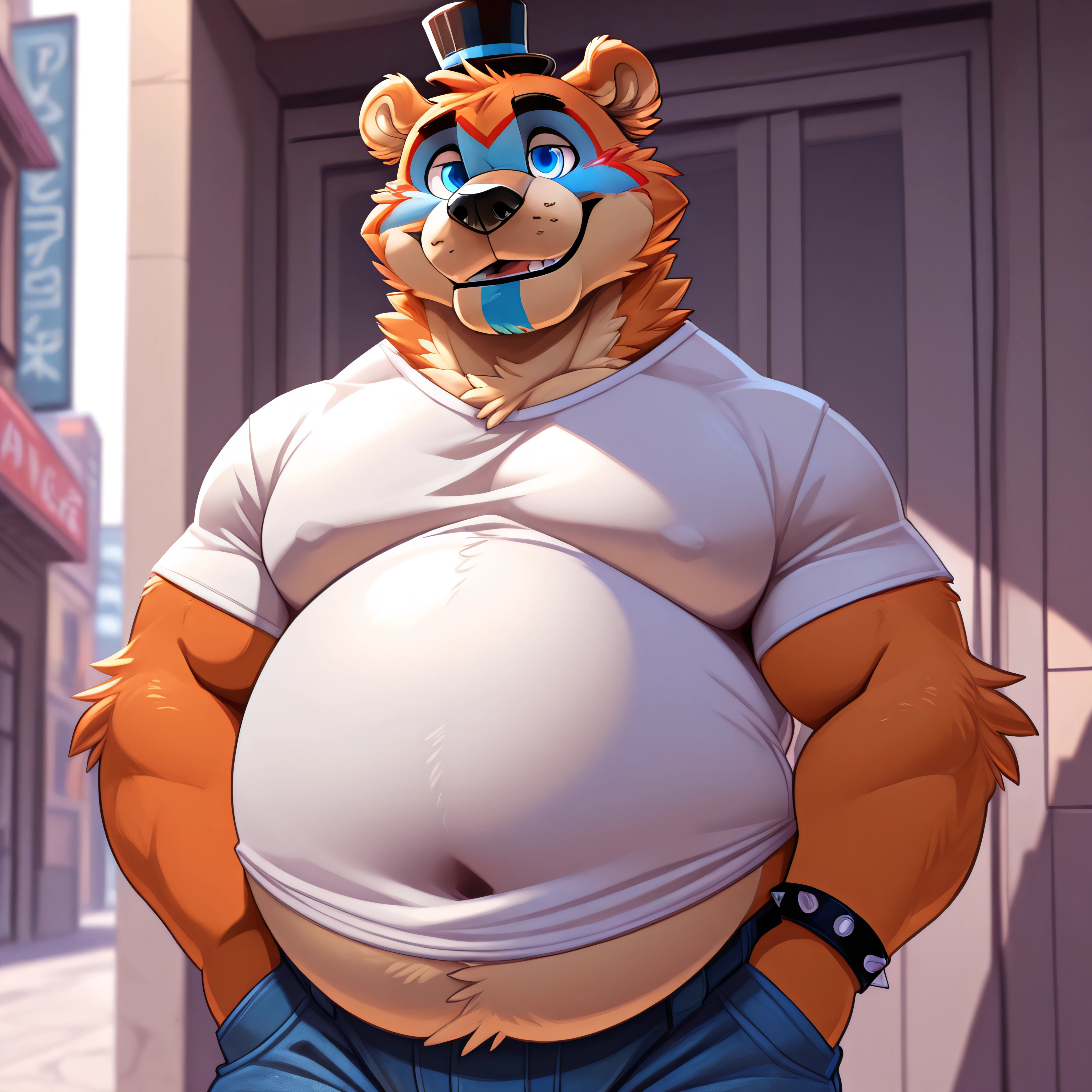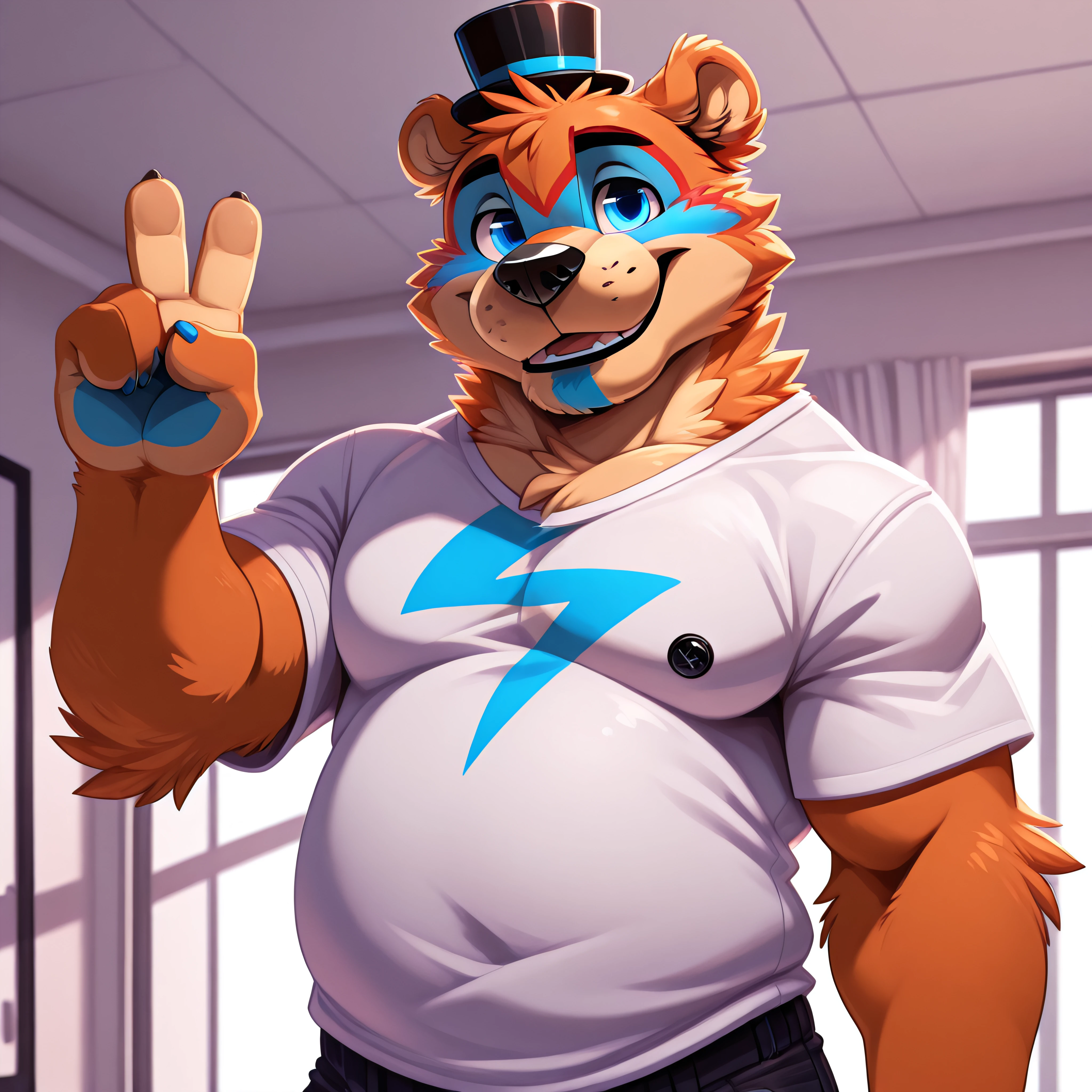 • Prompt: score_9_up, score_8_up, score_7_up, source_furry, best quality, masterpiece, outsude, park, park background, <add additional LoRAs triggers>, (bigfreddy), bear ears, solo, (looking at viewer), perfect body, (perfect ???????), fluffy paws, (fluffy paws), detailed ears, detailed hands, detailed body, perfect body, (detailed hands), zPDXL3, detailed hat, male focus, nice background, (flat chest), fluffy head:0.8, looking at viewer, cute and chubby round belly, black bowtie, cute and chubby body,