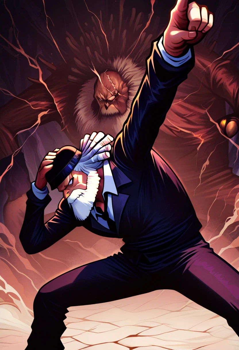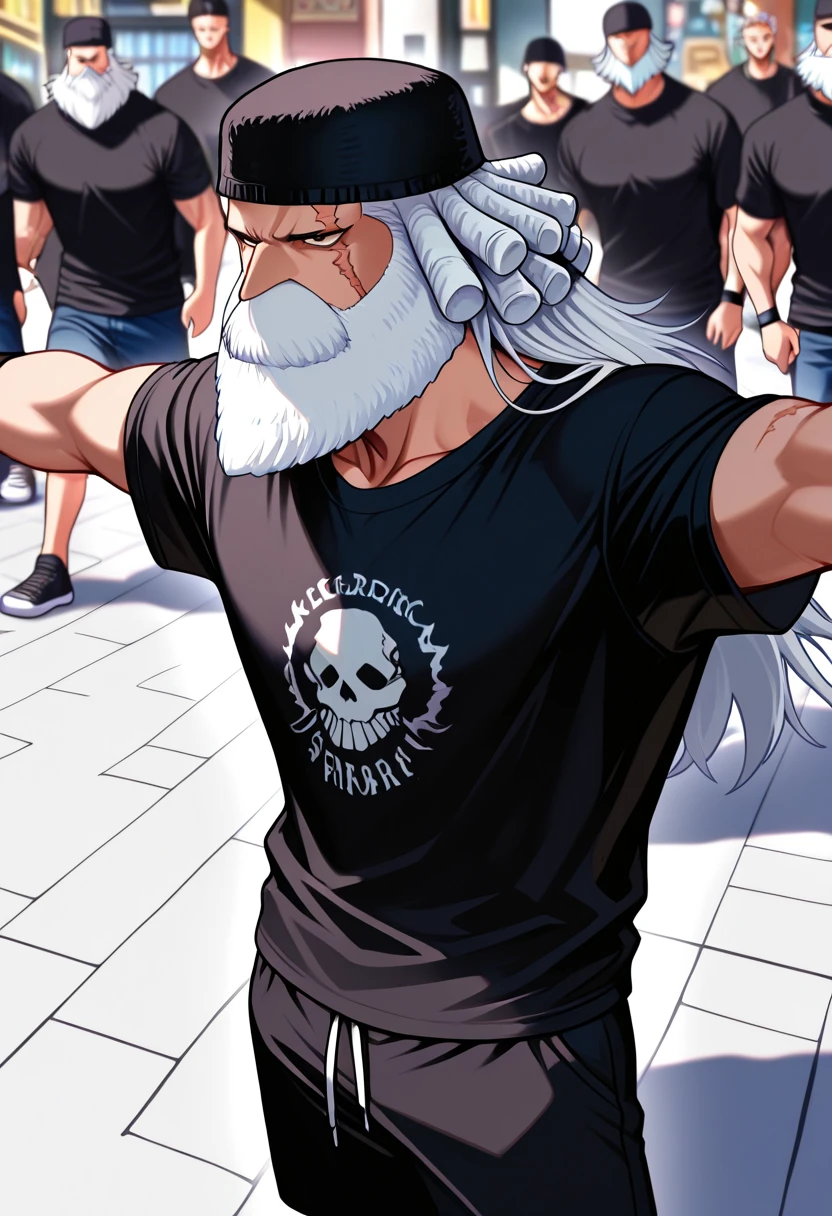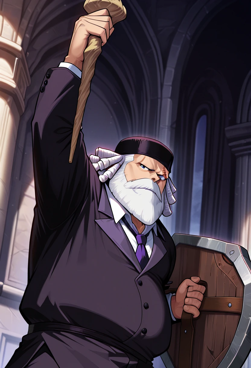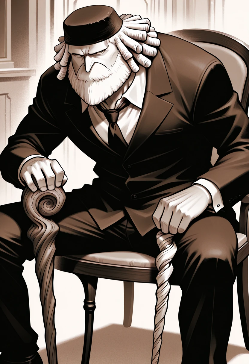 trigger words: jaygarcia saturn, old man, white hair, dreadlocks, beard, scar across eye, black hat, suit, necktie, collared shirt, cane
