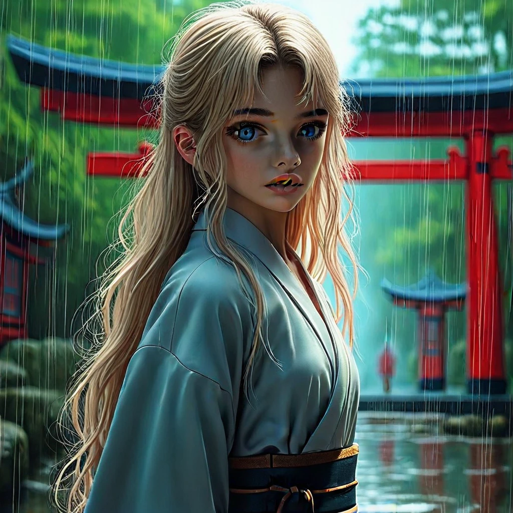 1girl, blond hair, pony tail, slightly wavy hair, long hair, blue eyes, 21yo, beautiful, small breast, perfect body