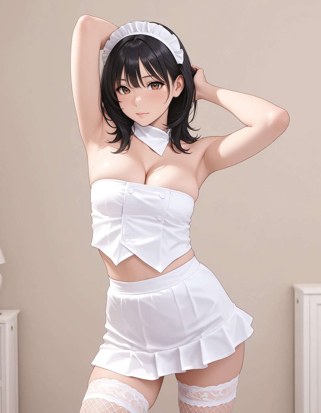 A mini sized LoRA model with white maid outfit worn by BJ.