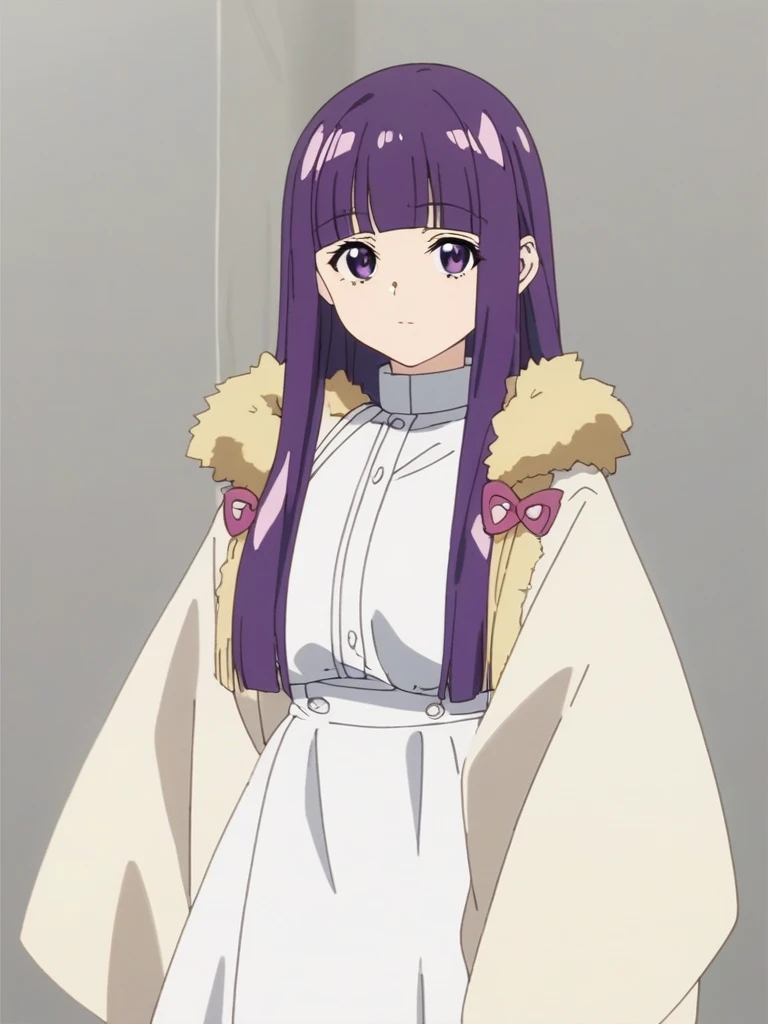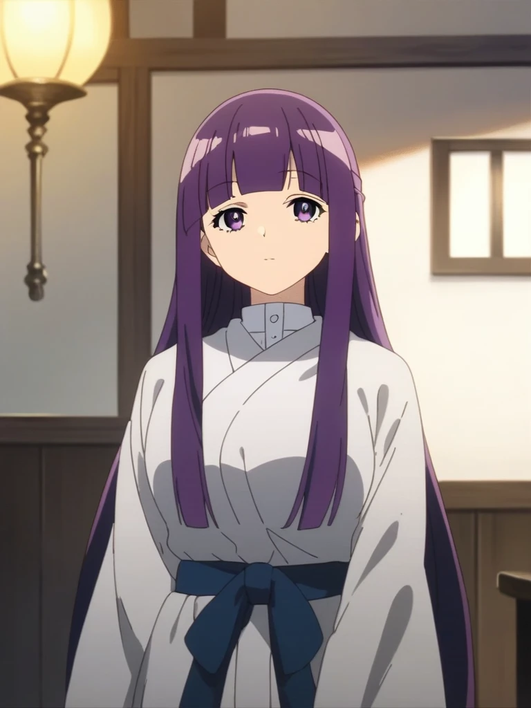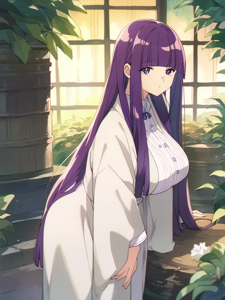 ferbn, long hair, purple hair, blunt bangs, purple eyes, robe,large breasts,
