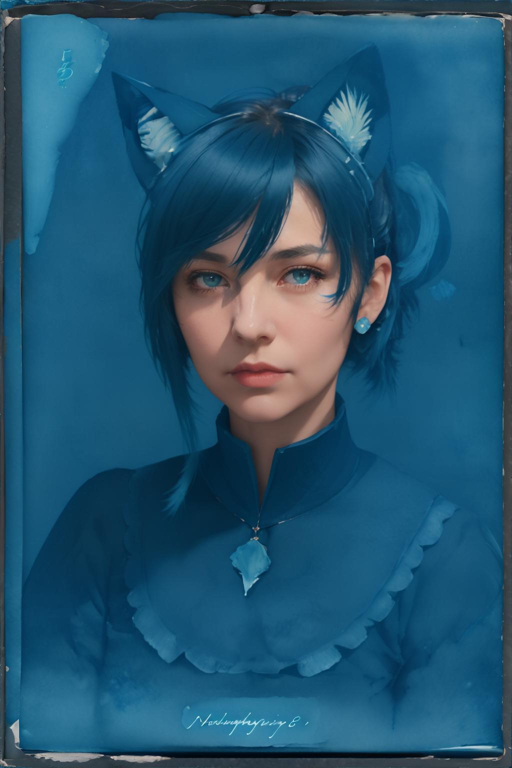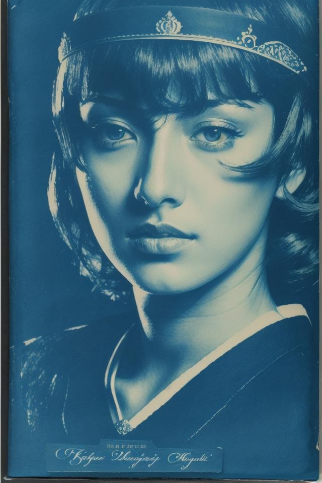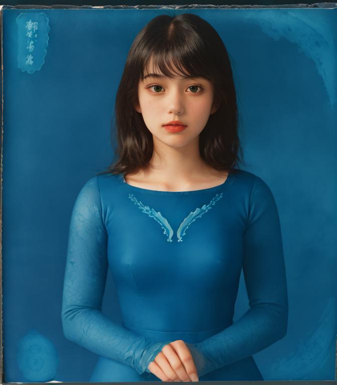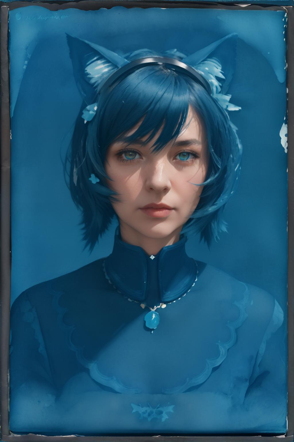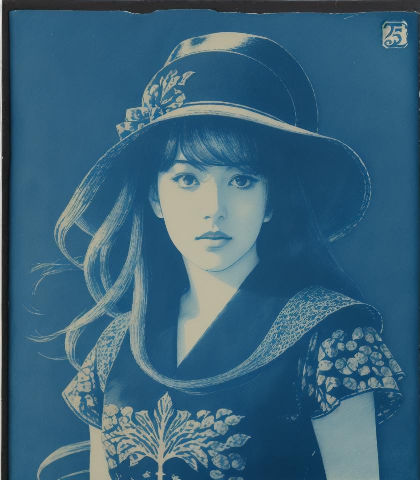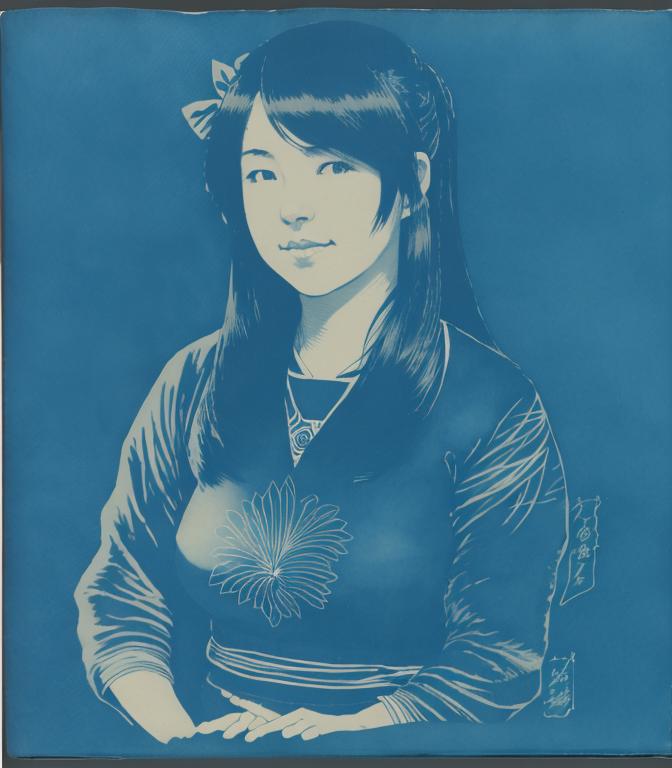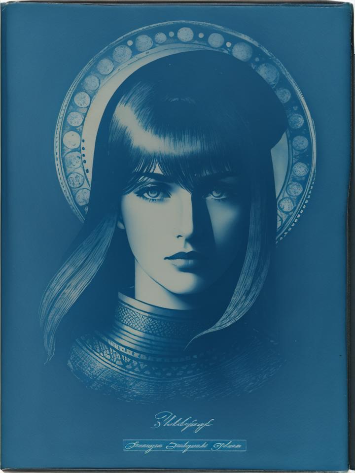 This model has been trained on vintage cyanotype images, one of the earliest forms of photography. Backgrounds become a rich Prussian blue, and details are picked out in whites and beige tones. The model has a tendency toward intricate, lacy, floral details and distressed edges. Pair with a photorealistic checkpoint for an ethereal retro aesthetic.