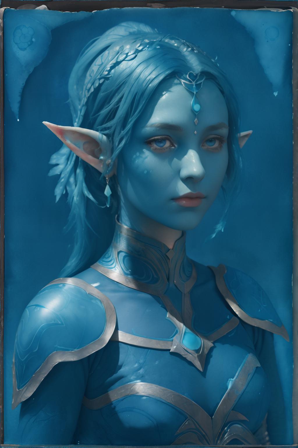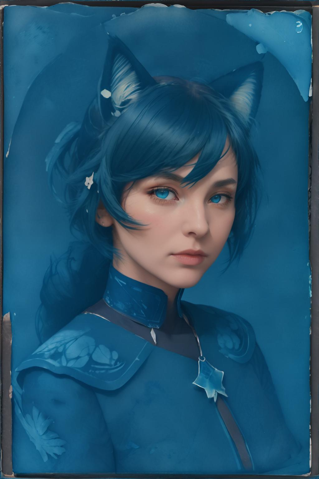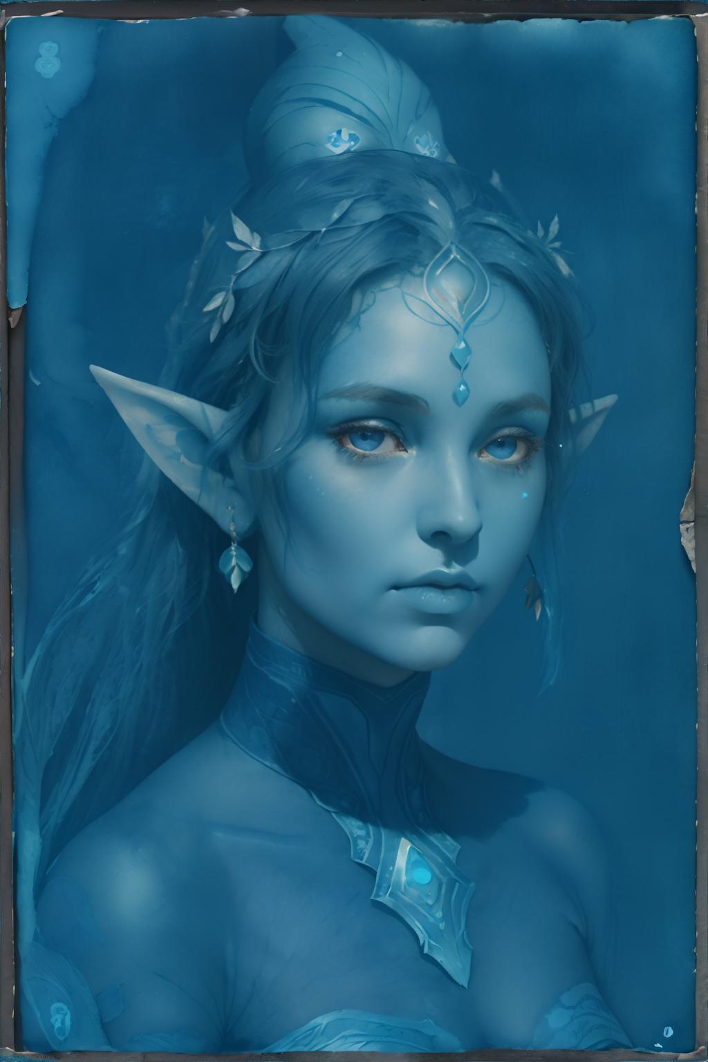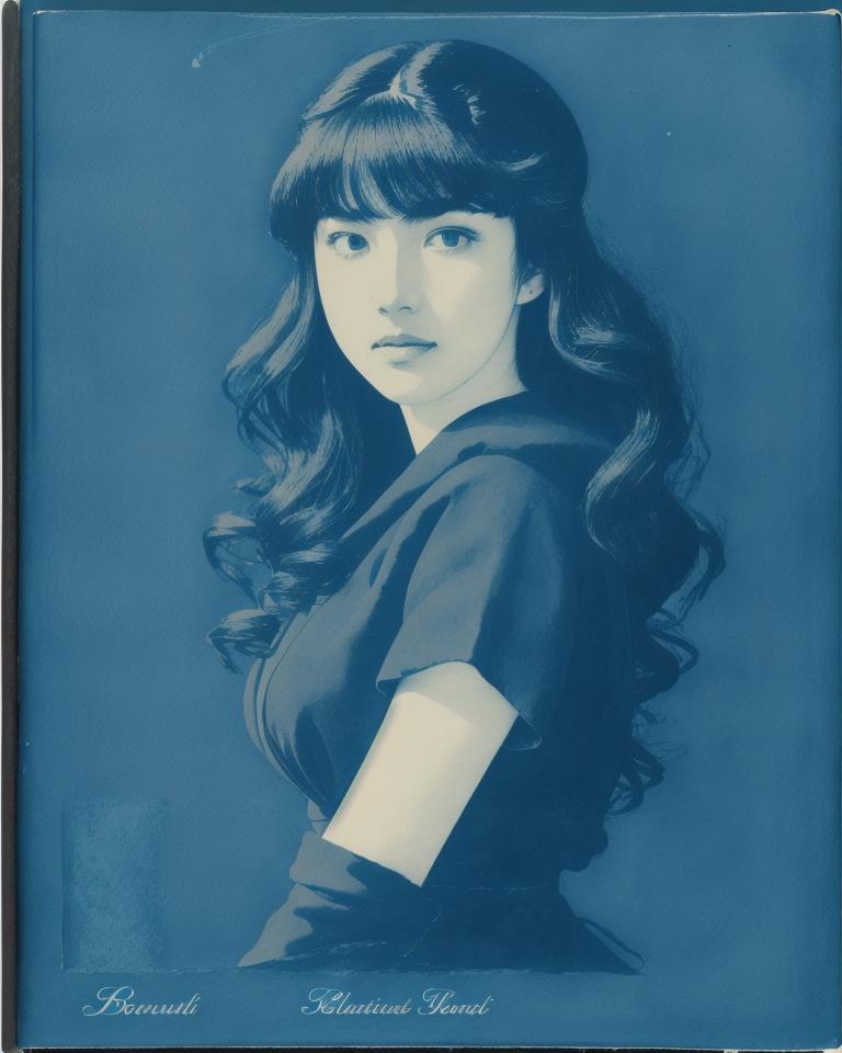 This model has been trained on vintage cyanotype images, one of the earliest forms of photography. Backgrounds become a rich Prussian blue, and details are picked out in whites and beige tones. The model has a tendency toward intricate, lacy, floral details and distressed edges. Pair with a photorealistic checkpoint for an ethereal retro aesthetic.