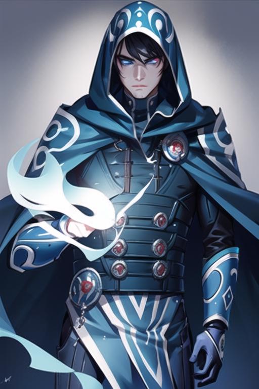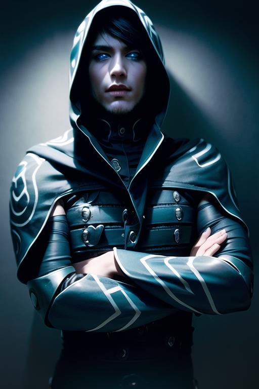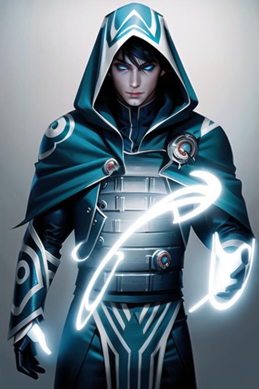 1boy,hood,glowing eyes,blue eyes,black hair