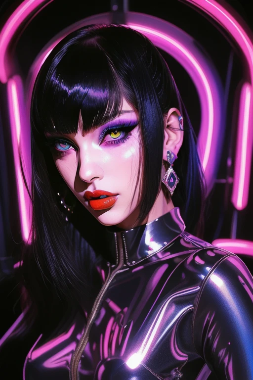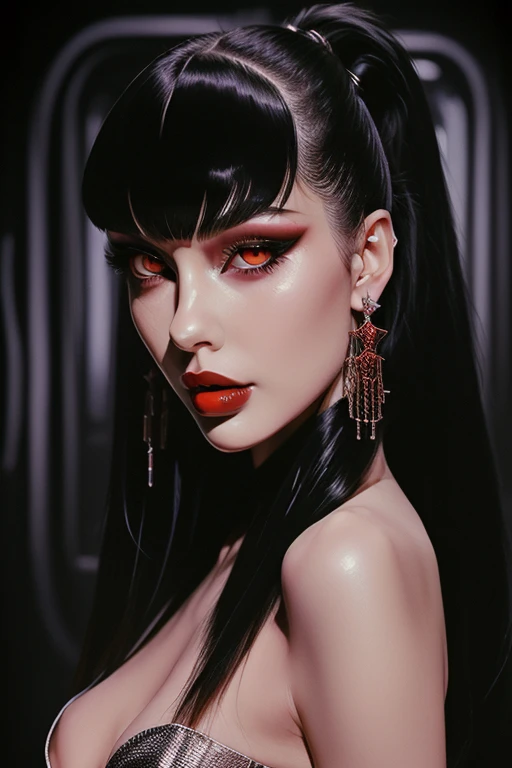 a semi realistic pinup style, hard lines, vivid