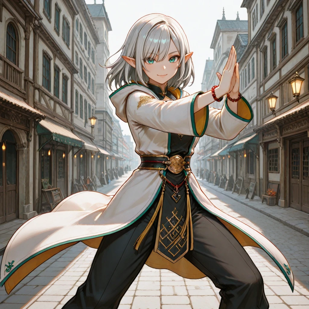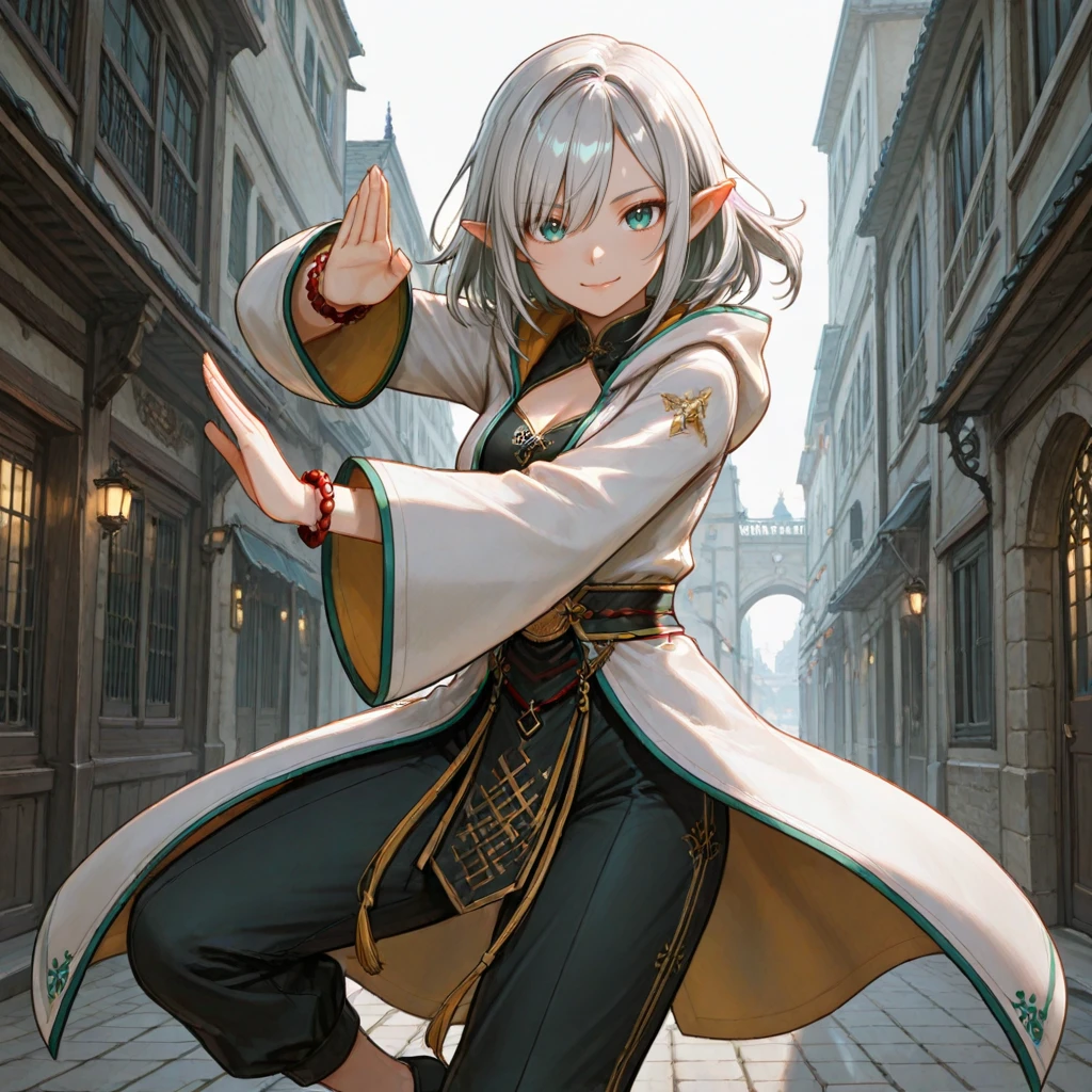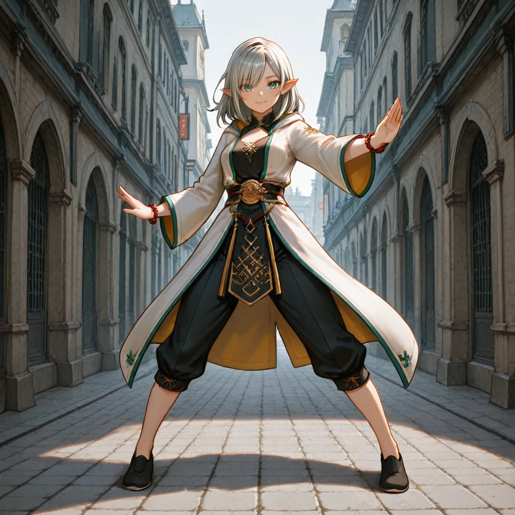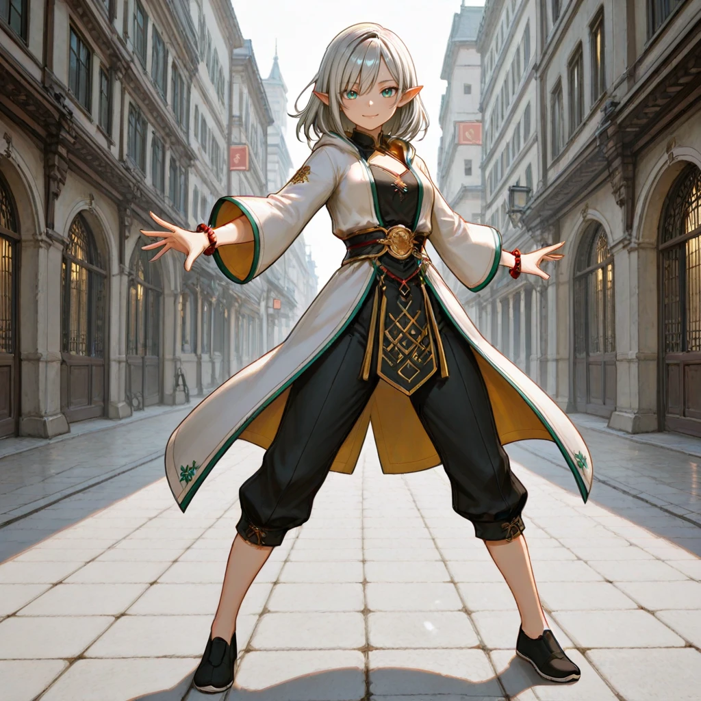 Elara_Sylvania, Elara_Costume, white coat, black chinese clothes, pants, shoes, band, bracelet,