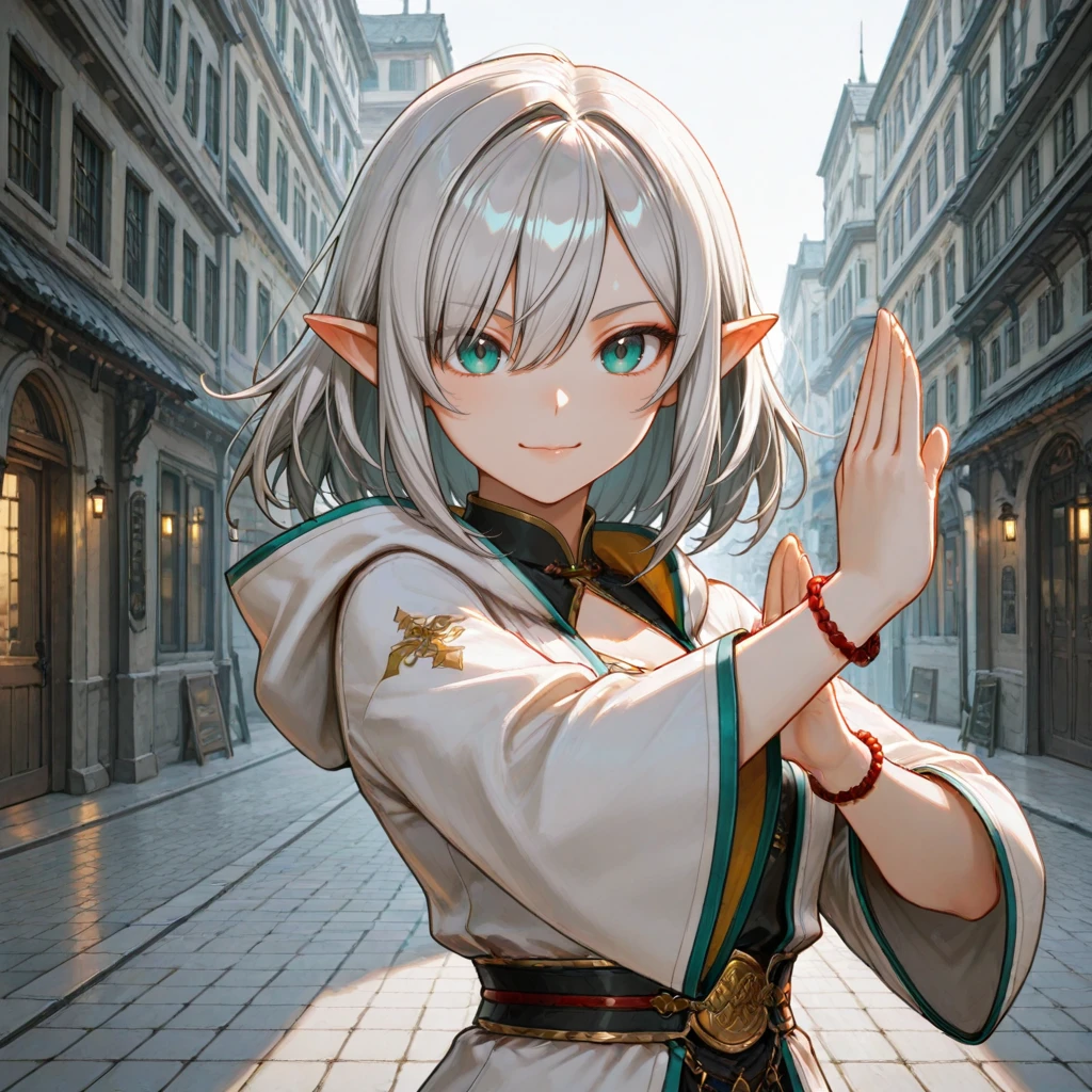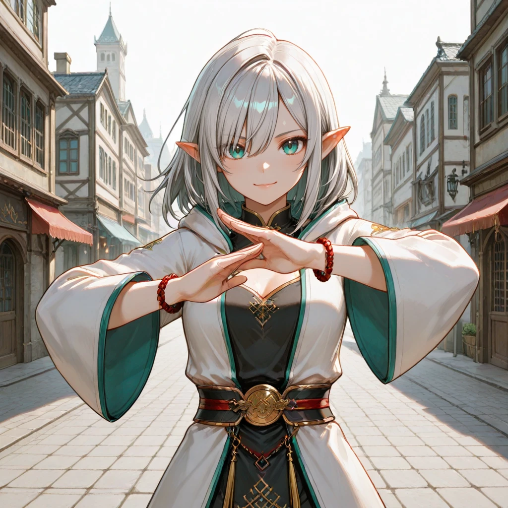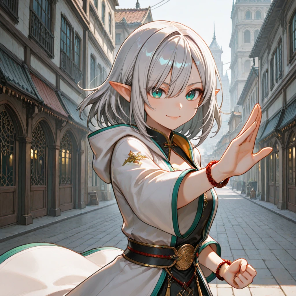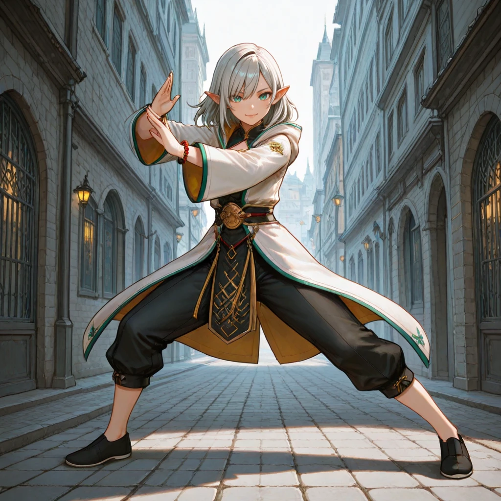 Elara_Sylvania, Elara_Costume, white coat, black chinese clothes, pants, shoes, band, bracelet,