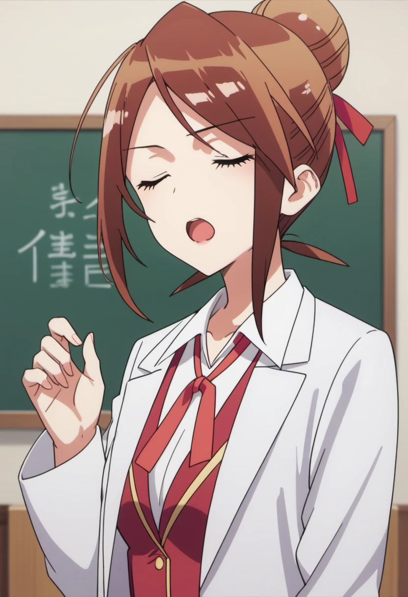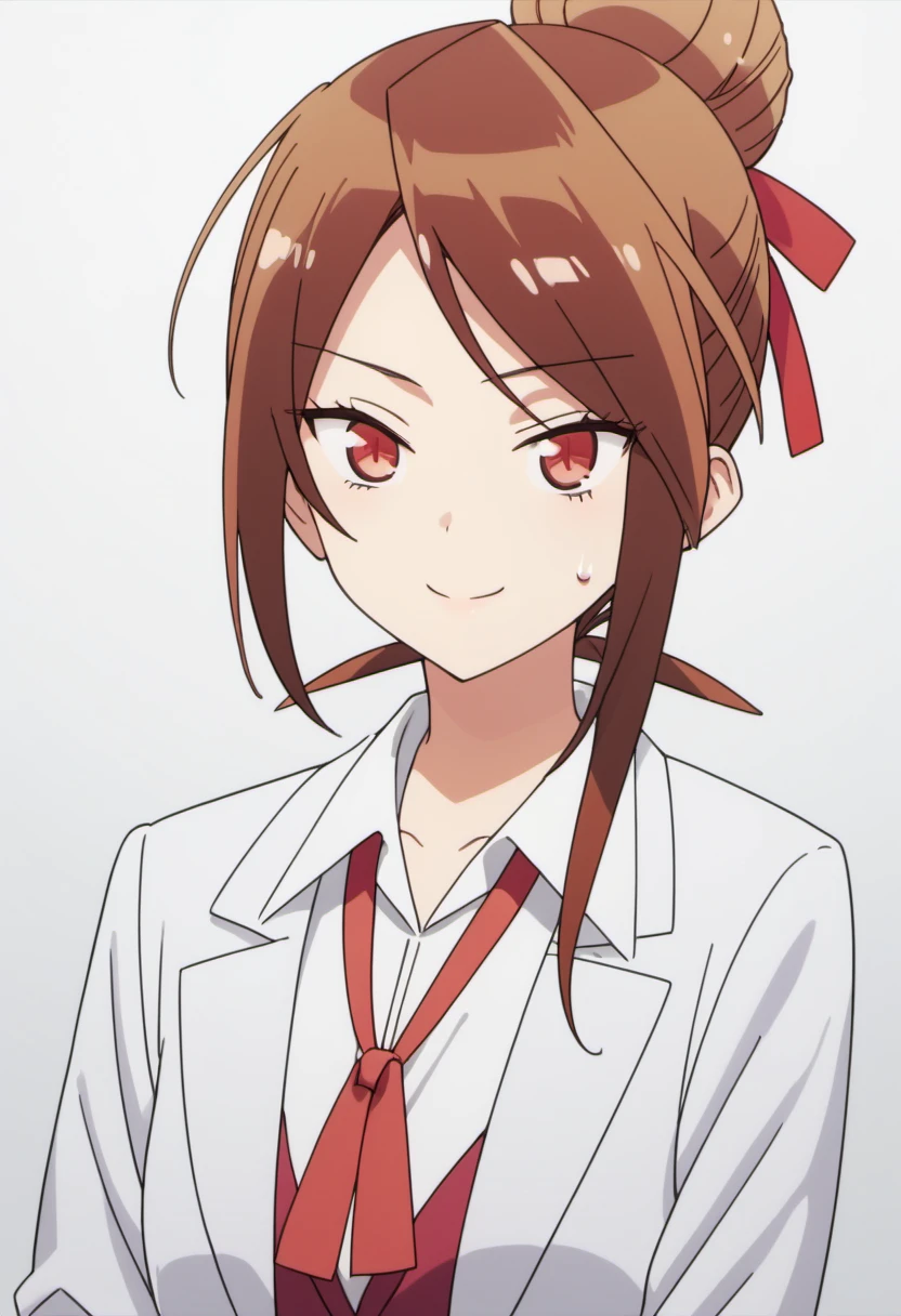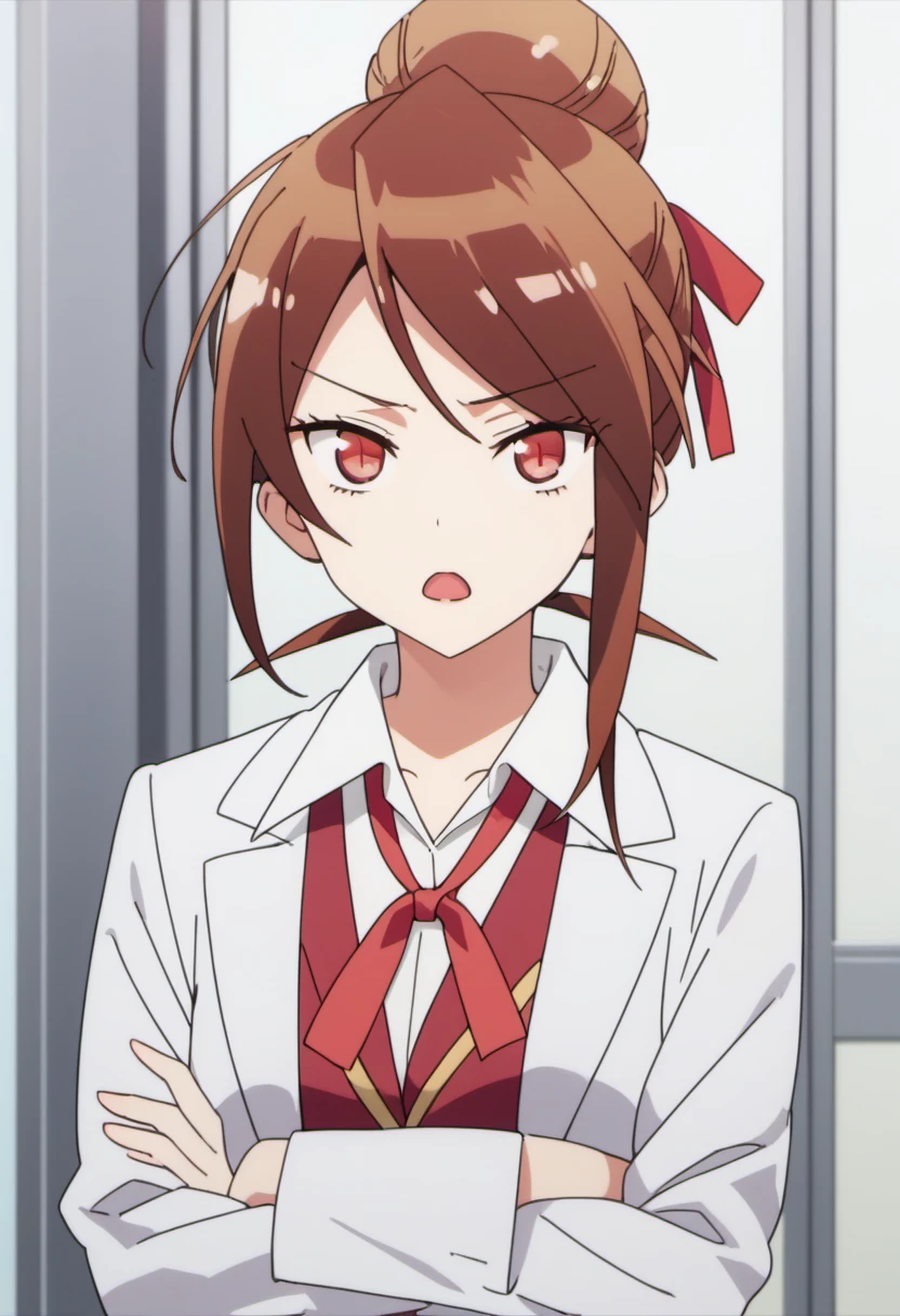Trigger Words: sekijou sawako, brown hair, red eyes, hair bun, single hair bun