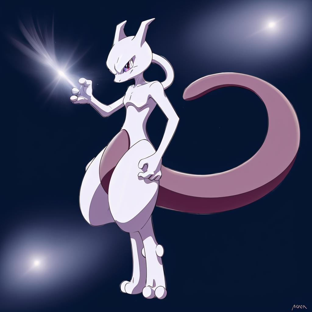 A trained LoRA model of the legendary pokemon. I have worked to fix issues with other models that tend to mess up his tail. With decent prompting, you should be able to generate your own art of MewTwo in different locations with different intents. (It does like to give him ??????? though so maybe add ??????? to negative prompt if you have issues with this...but I noticed it's only every few generations it does this...so seed manipulation might even fix the problem, too).