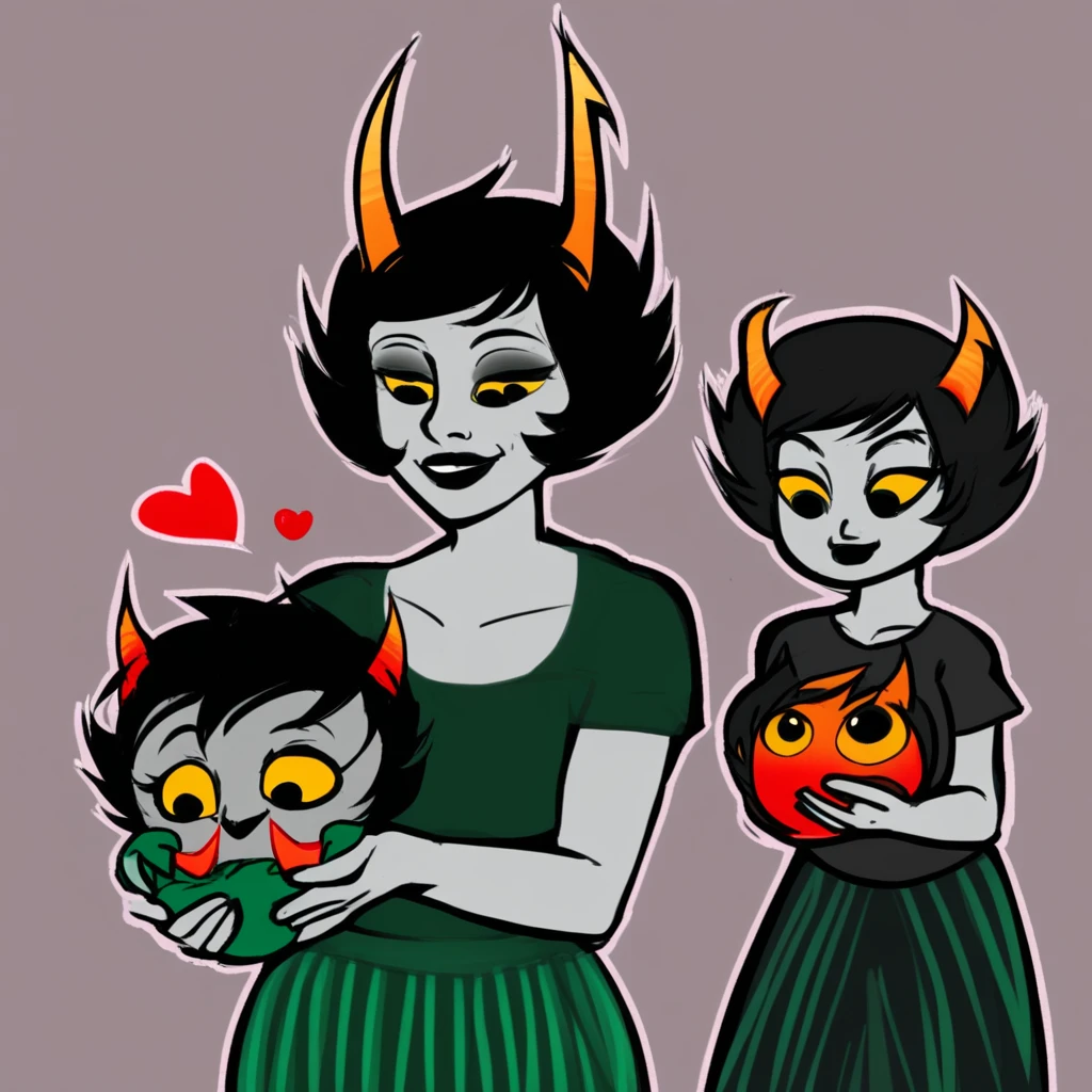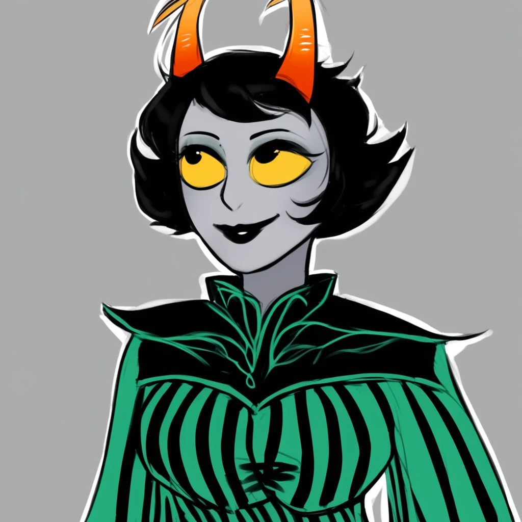 grey skin, black hair, short hair, black lips, makeup, fangs,