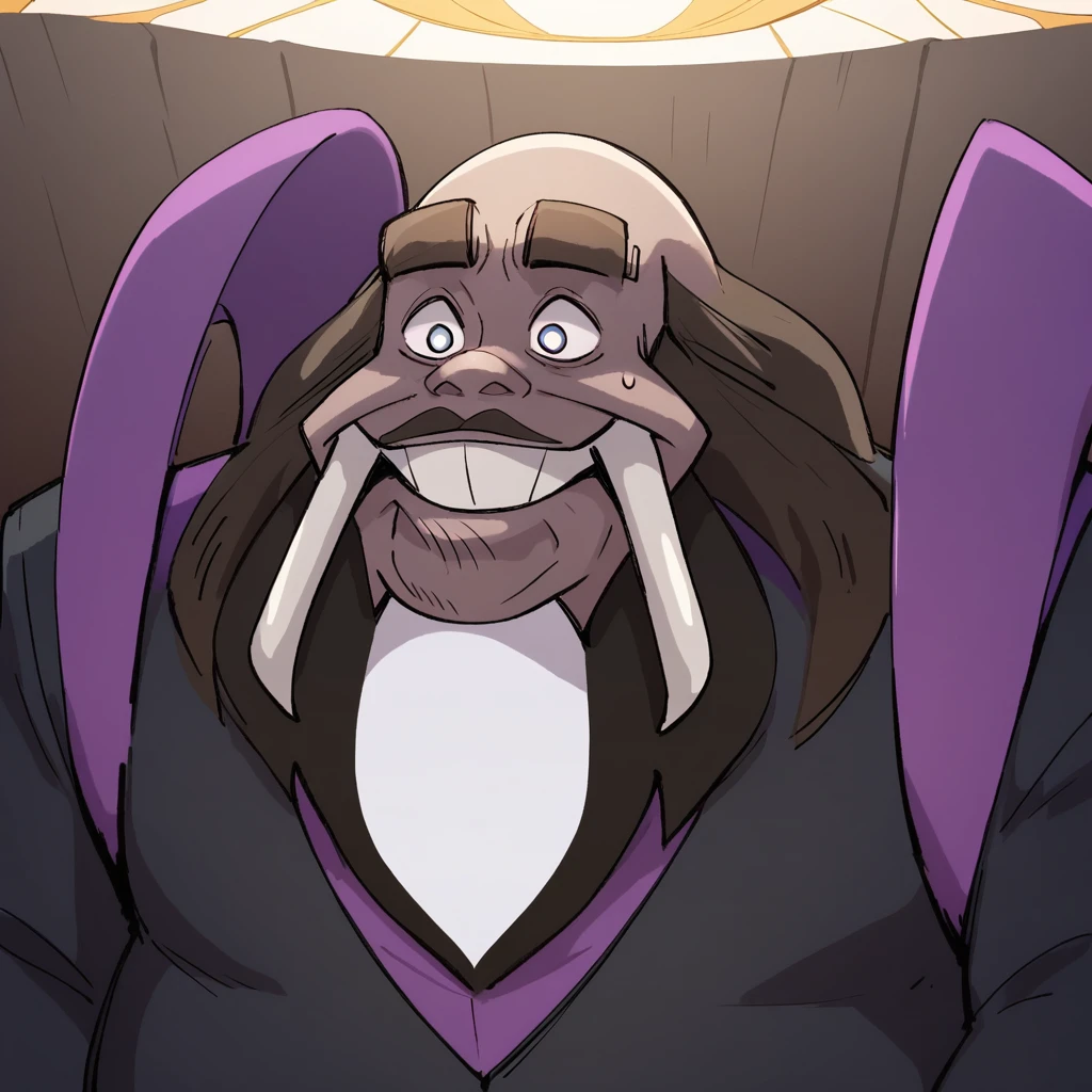 campionajax, 1boy, solo, fat man, bald, thick eyebrows, white pupils, beard, buck teeth