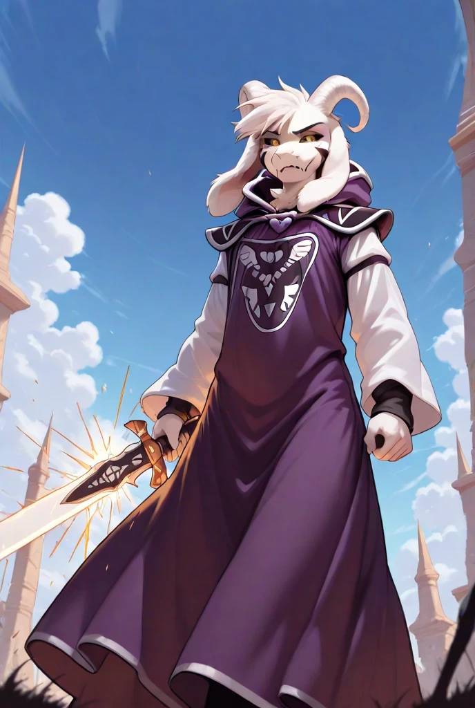 Asriel,goat, goat ears,furry,goat horns, colored sclera,animal ears,purple eyes, black sclera, facial markings,body markings