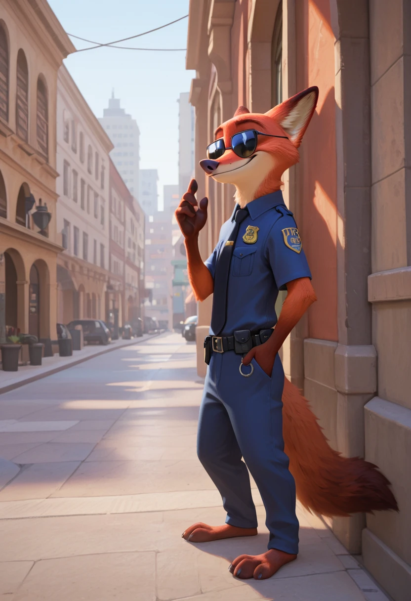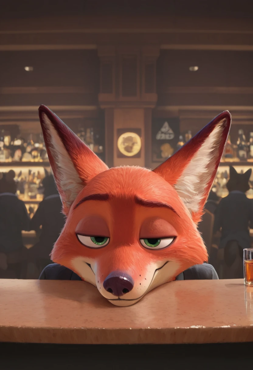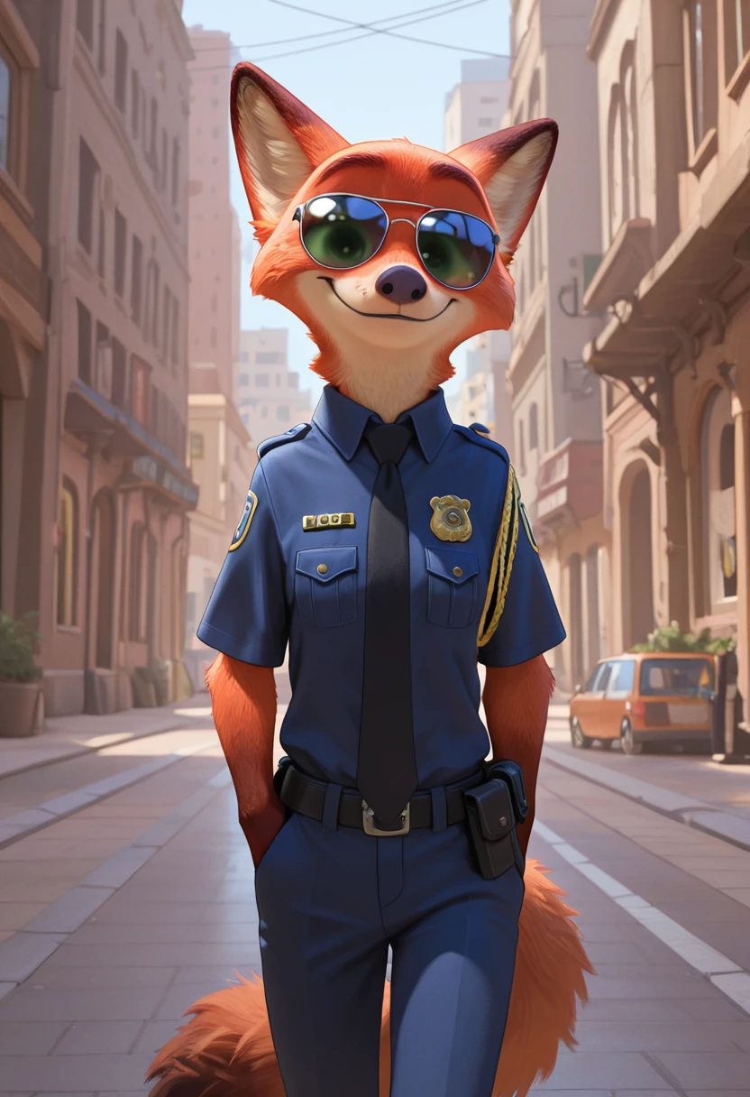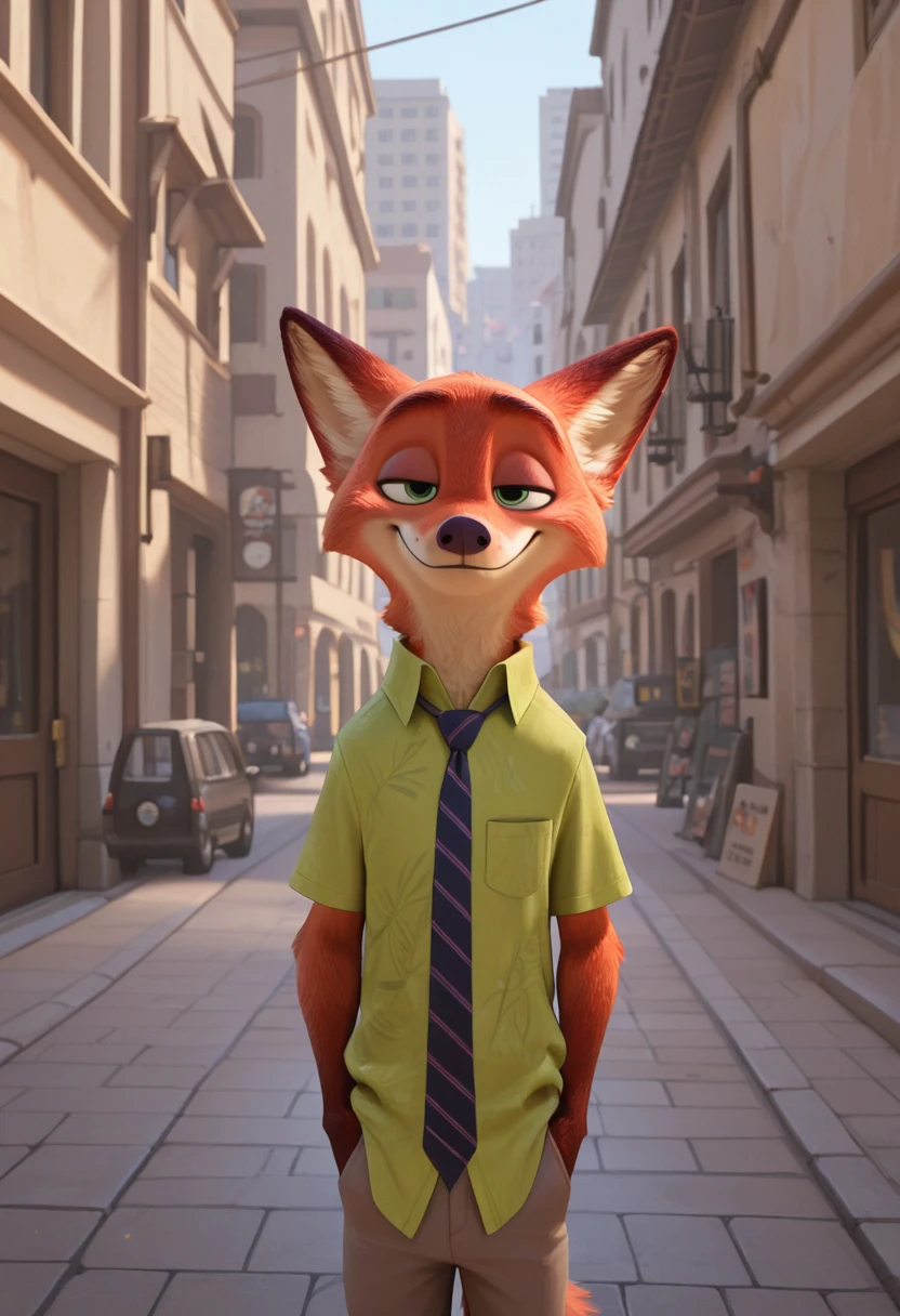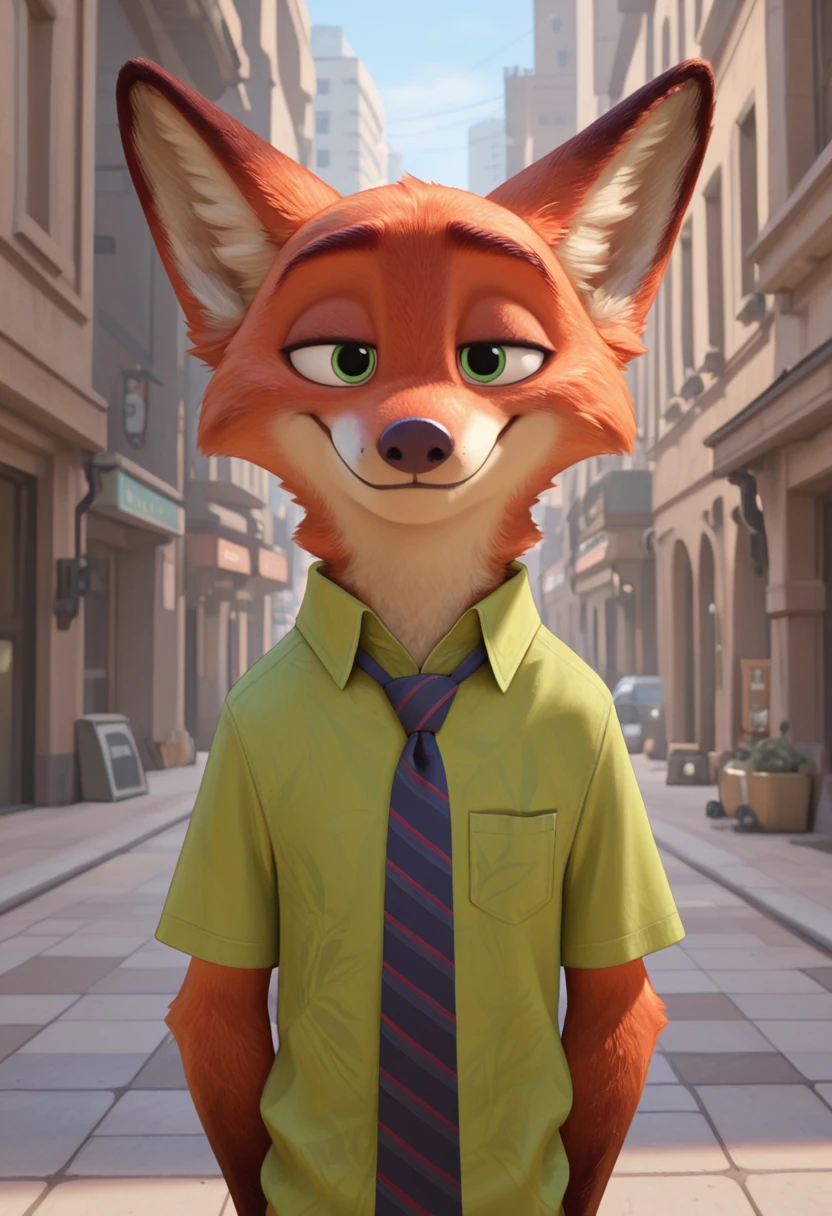 (nickwilde:1.2, male anthro fox), two tone fur, fox ears, red fur, white fur, green eyes,