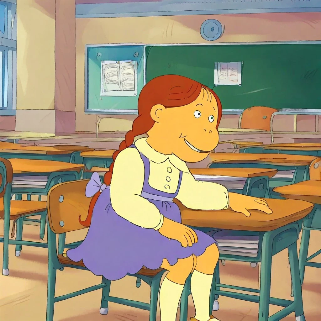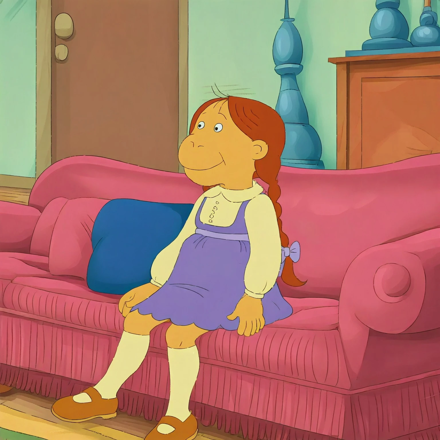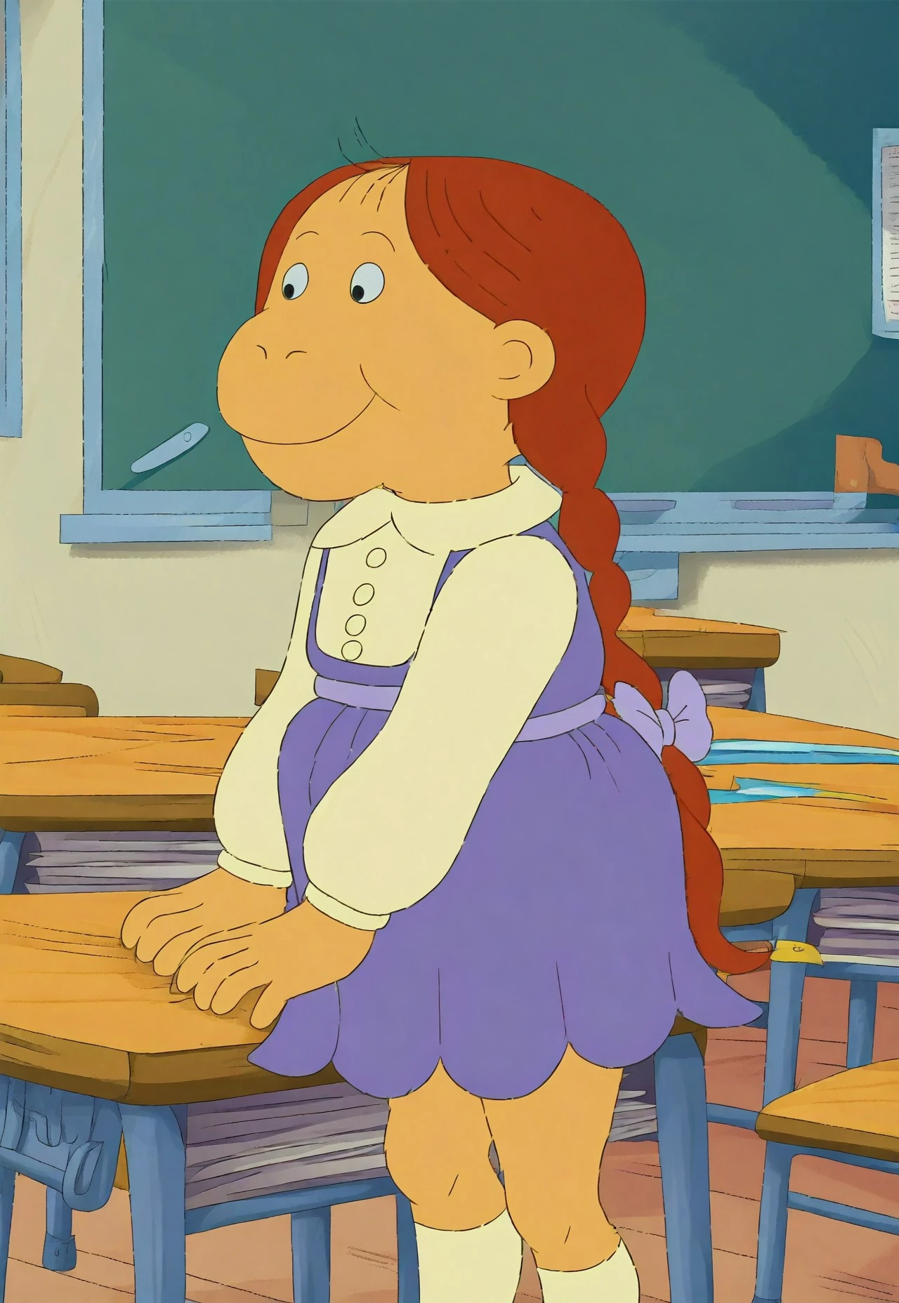 Muffy Crosswire from arthur, auburn hair, twin braids,