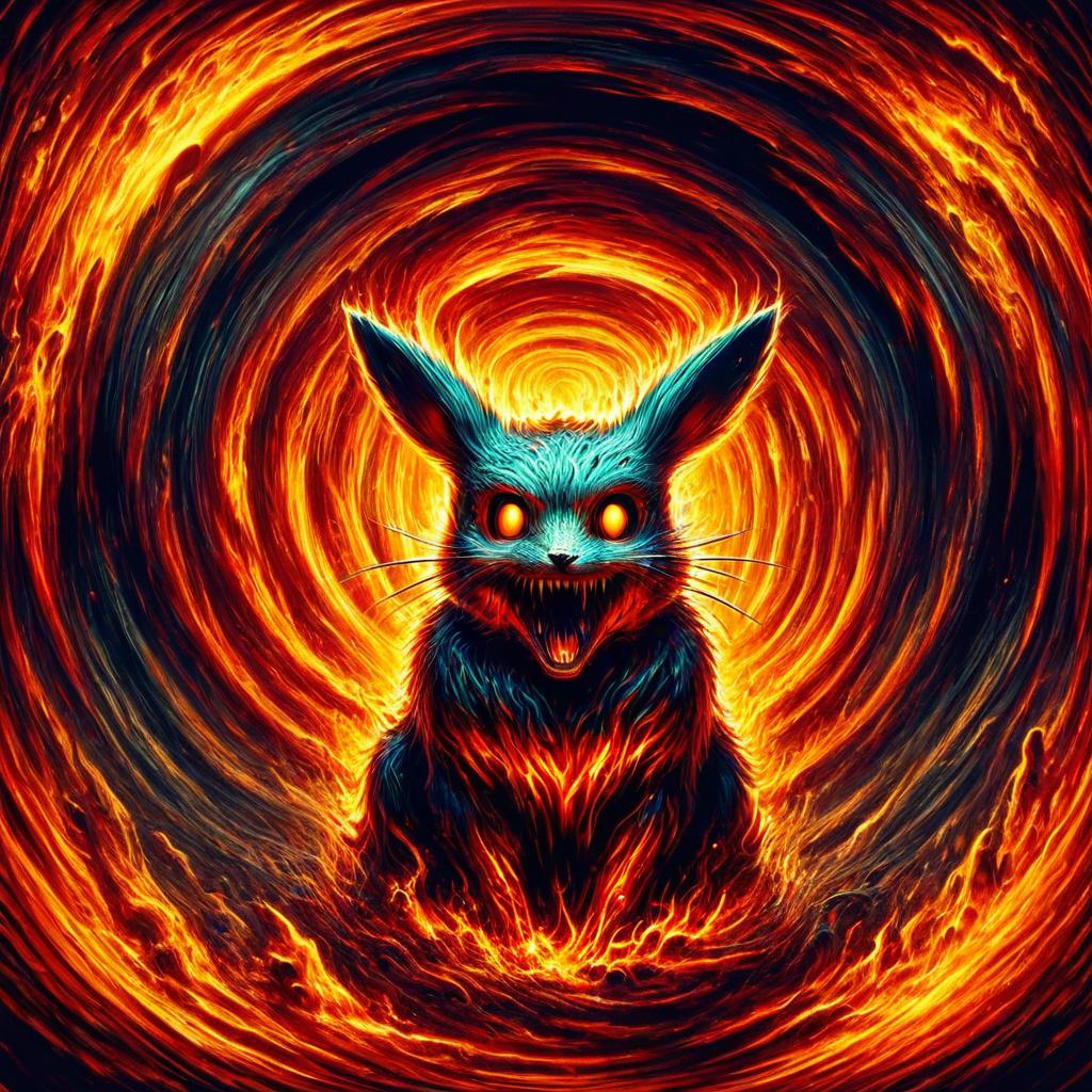 The "Infernal Vortex" style is characterized by its hellish and nightmarish aesthetic, merging fiery colors with frightening figures to create intense and horrifying visuals. This style often features distorted elements and eerie environments, evoking a sense of dread and the supernatural. It plays with themes of infernal chaos and the macabre, utilizing a vivid color palette to enhance the terrifying impact of its subjects, whether they are people, animals, or scenes. This style is perfect for conveying a sense of the uncanny and the grotesque, making it ideal for horror-themed artistic creations.