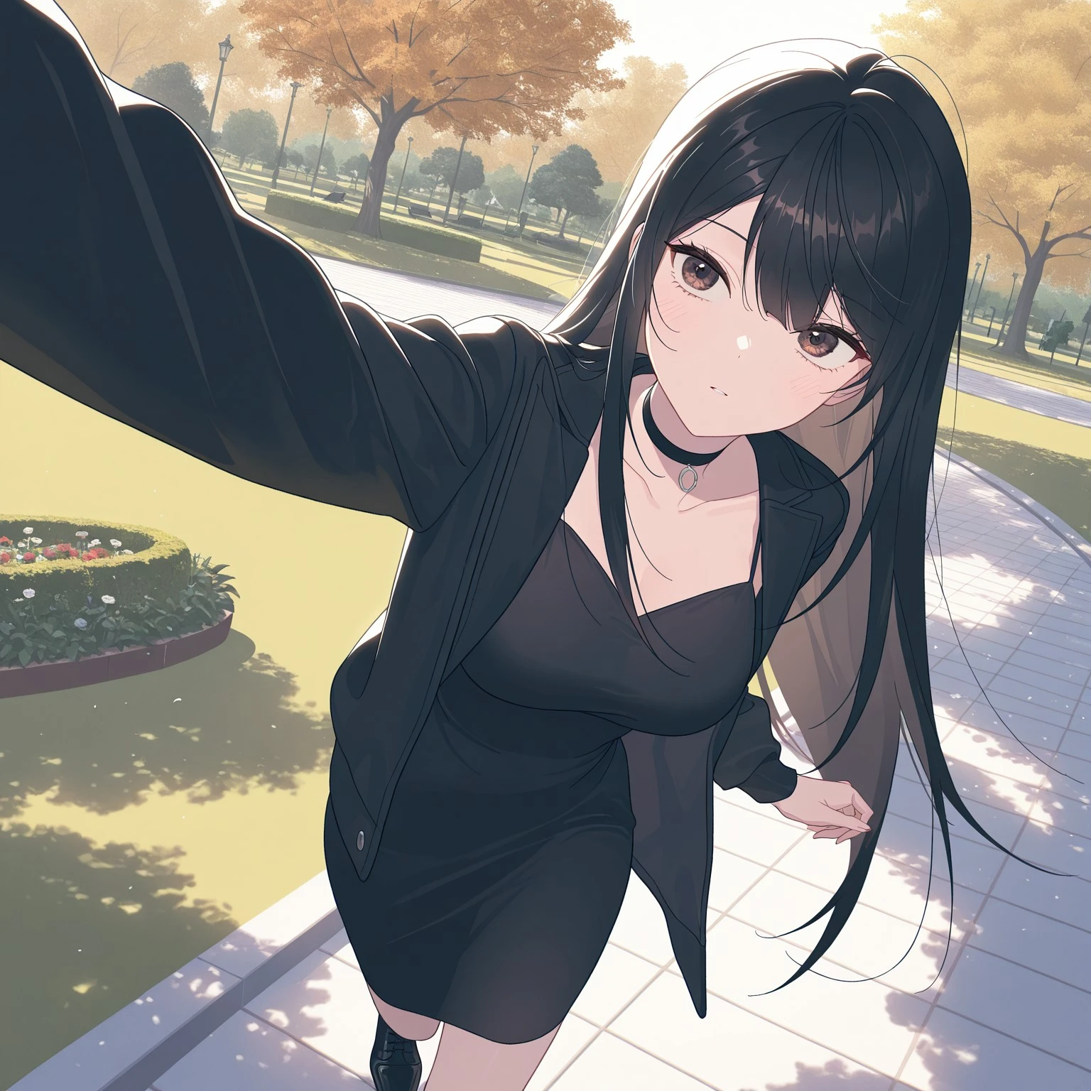 dress: miacl, collarbone, choker, black choker, jacket, black jacket, dress, black dress, cleavage, black footwear