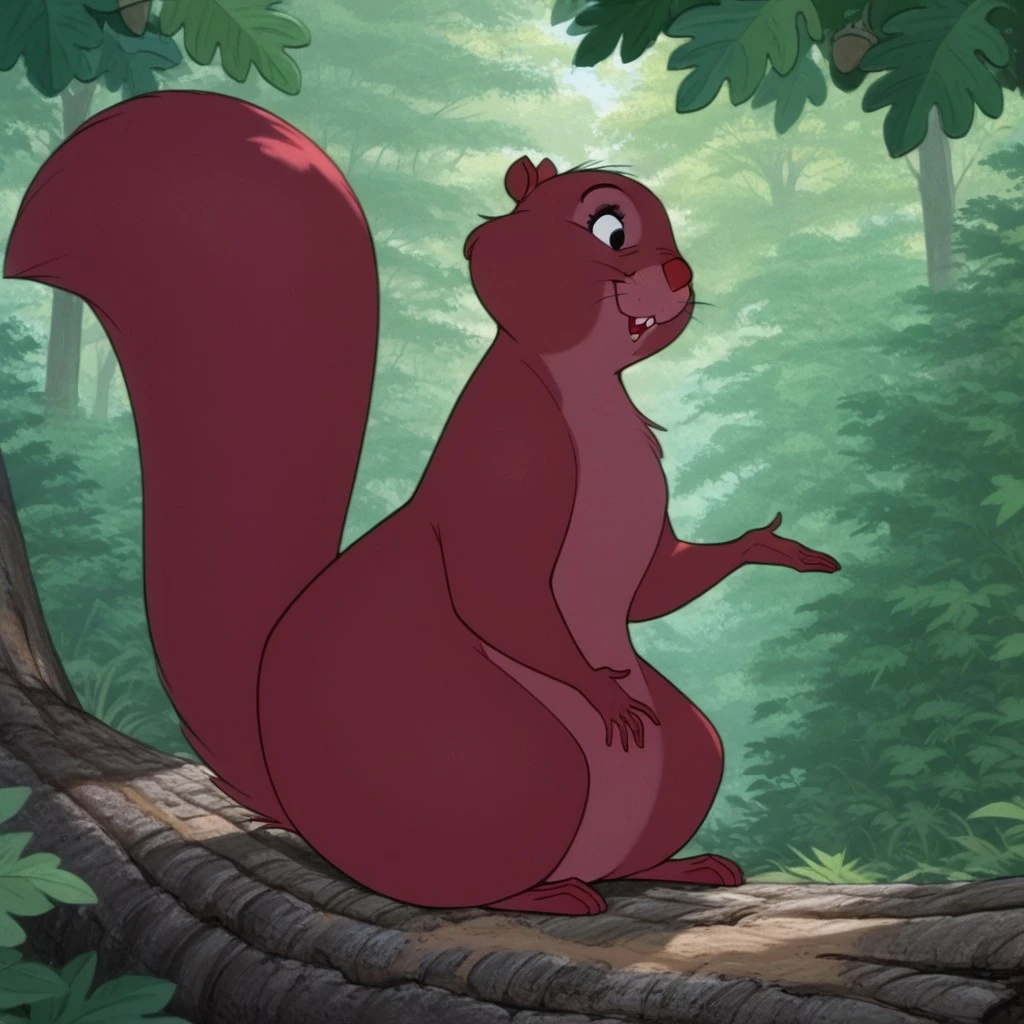 feral, female, squirrel_girl, red fur, black eyes, whiskers, buck teeth, 1girl, tail