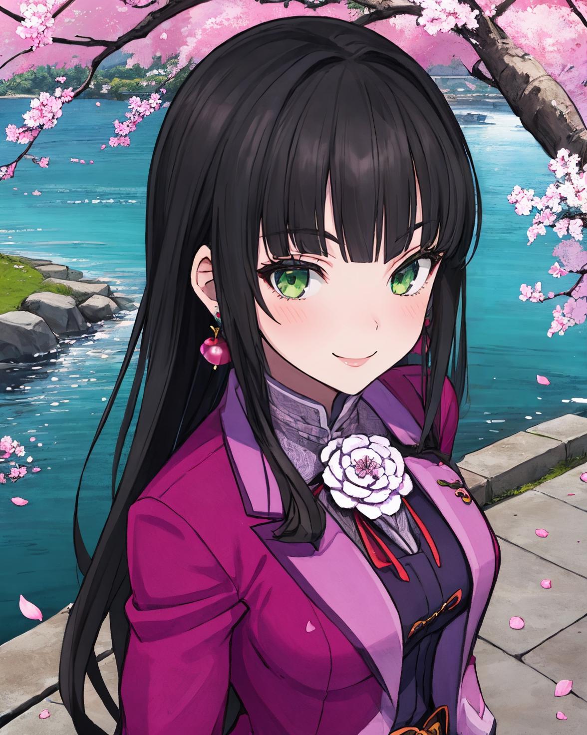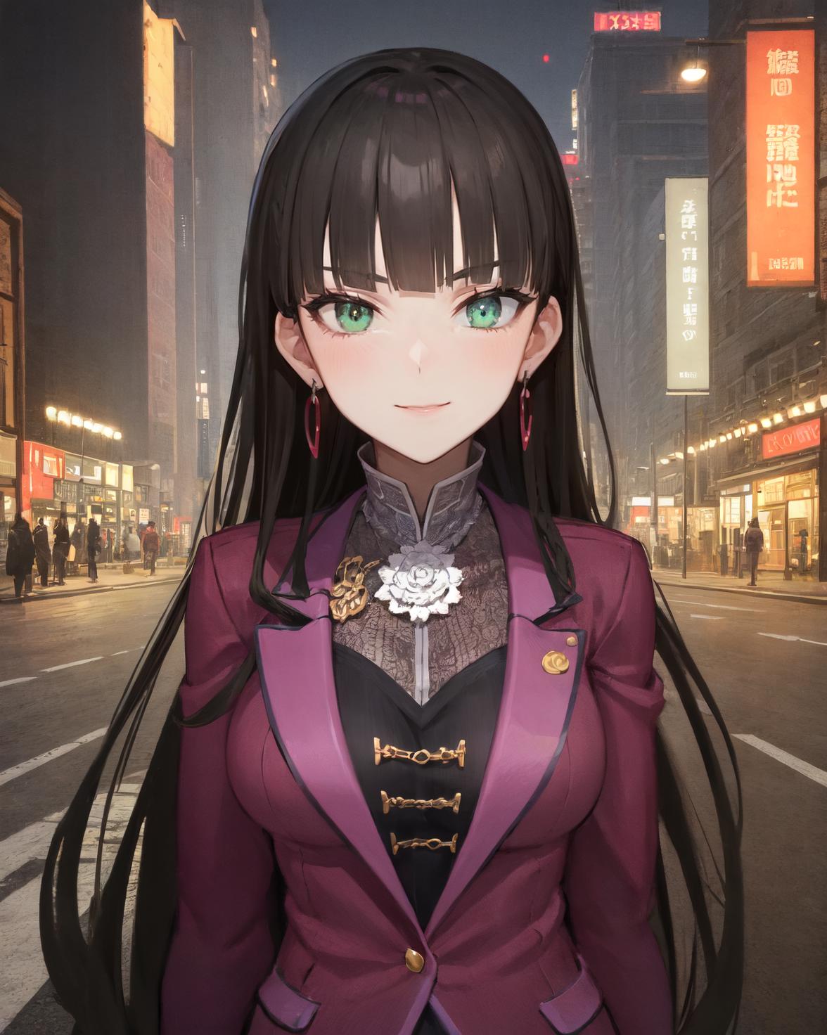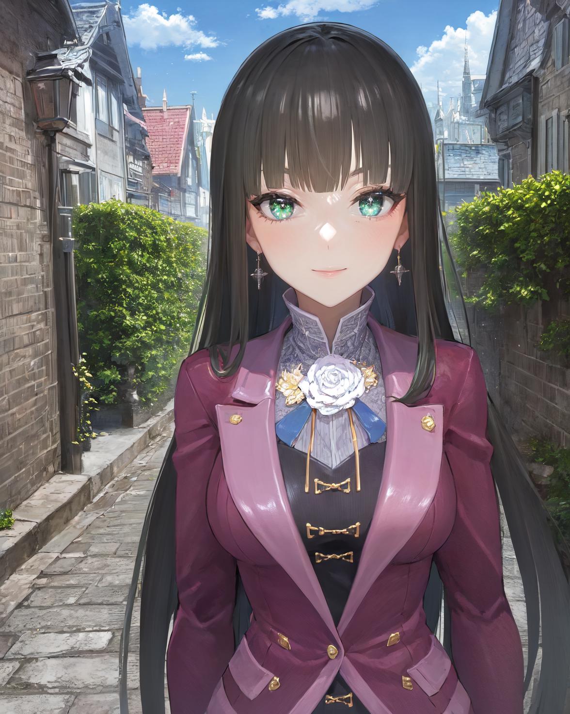 <lora:Kilika-08:0.8>, Kilika Rouran, black hair, long hair, blunt bangs, hime cut, green eyes, medium breasts,