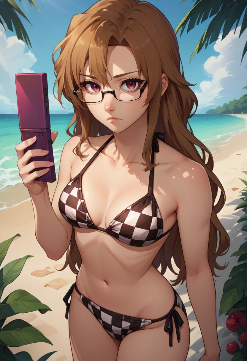 Default Outfit: glasses, white shirt, collared shirt, short sleeves, black skirt, belt