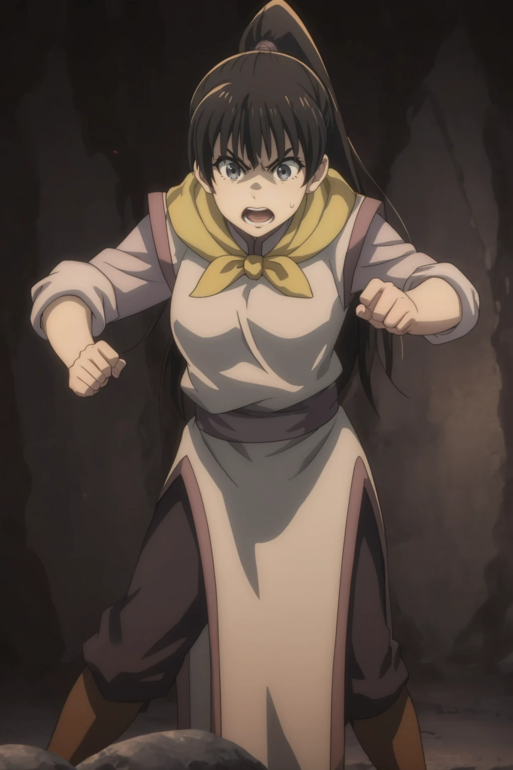 1girl, Fighter, black hair, ponytail, grey eyes