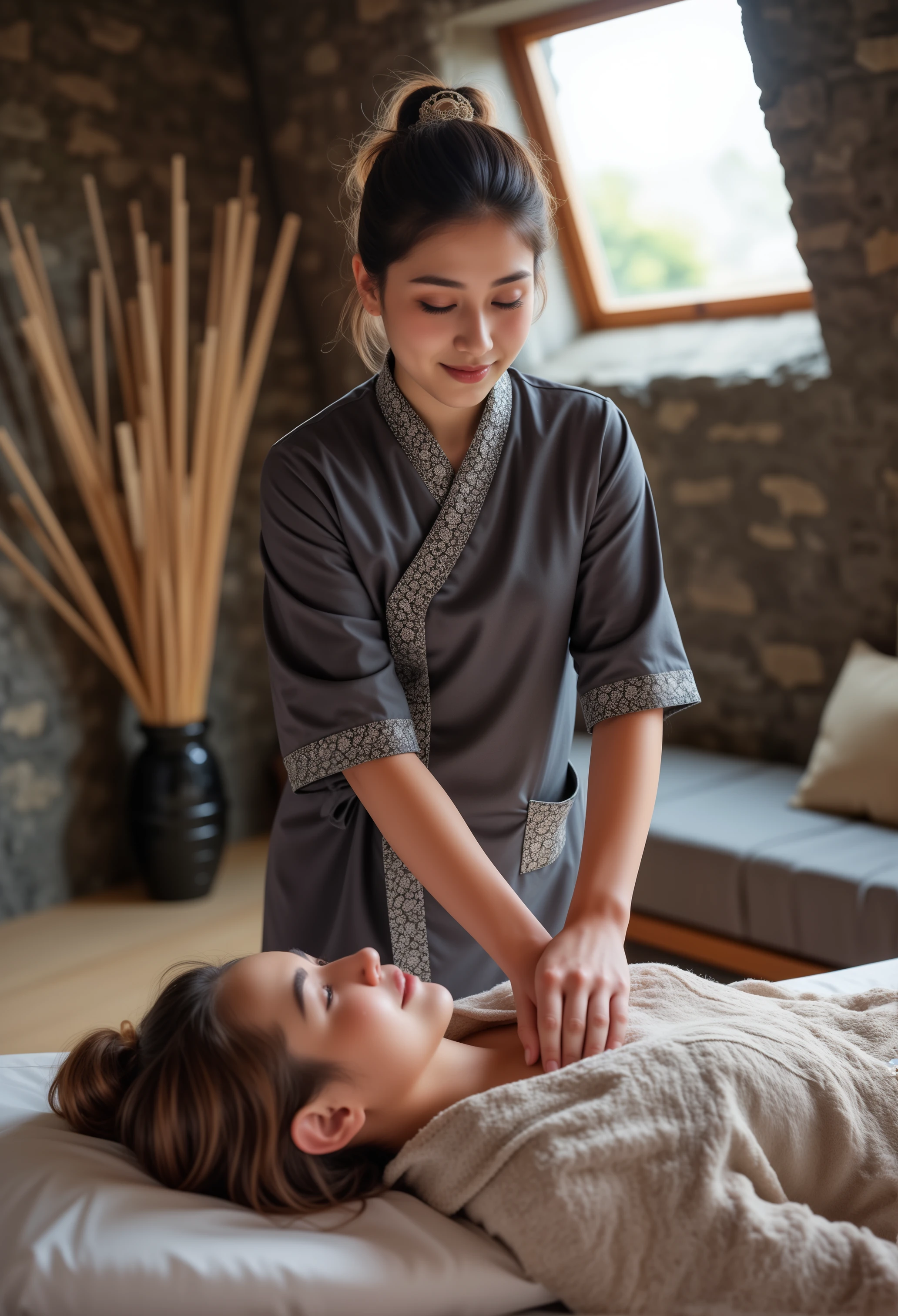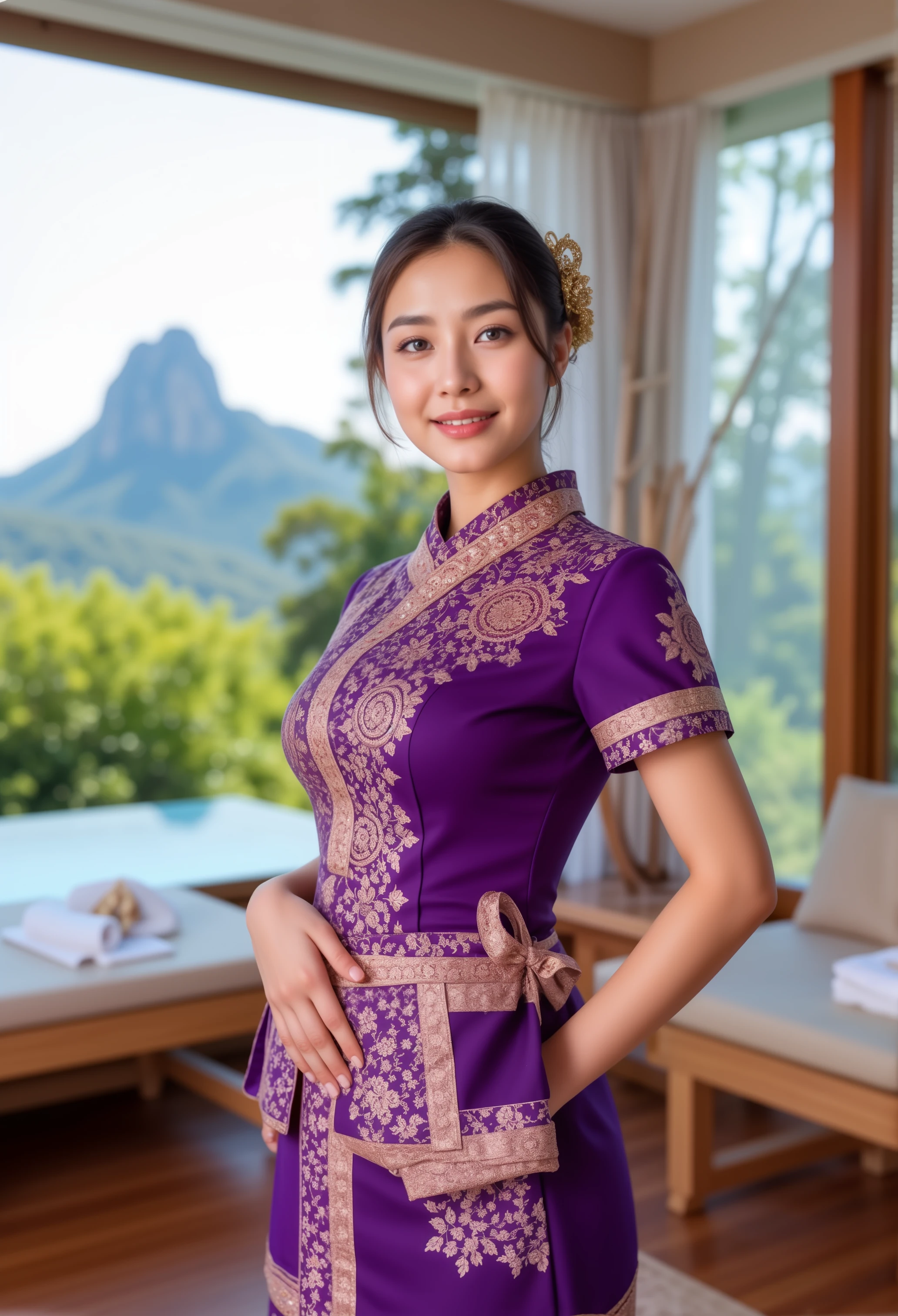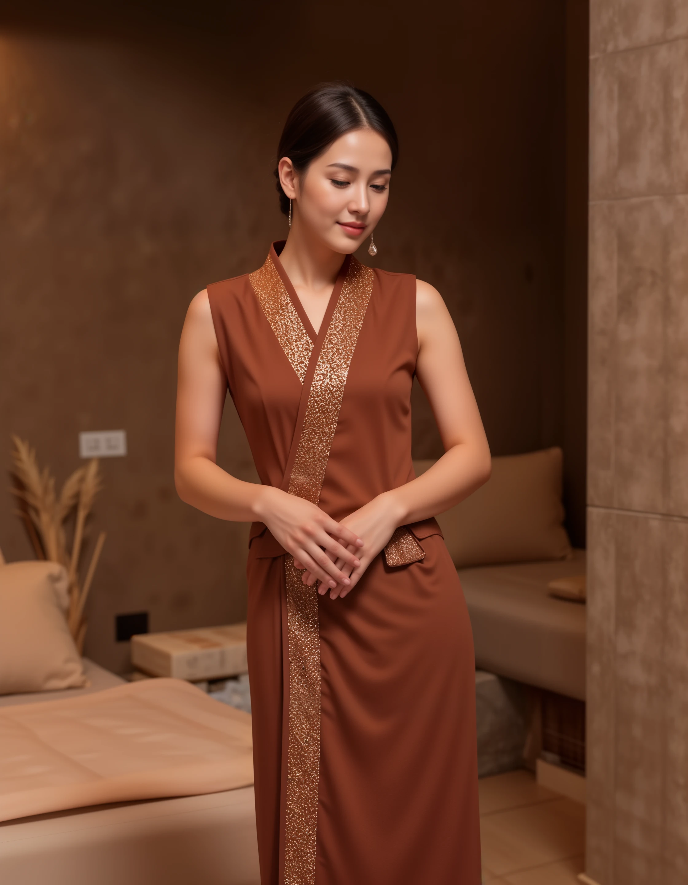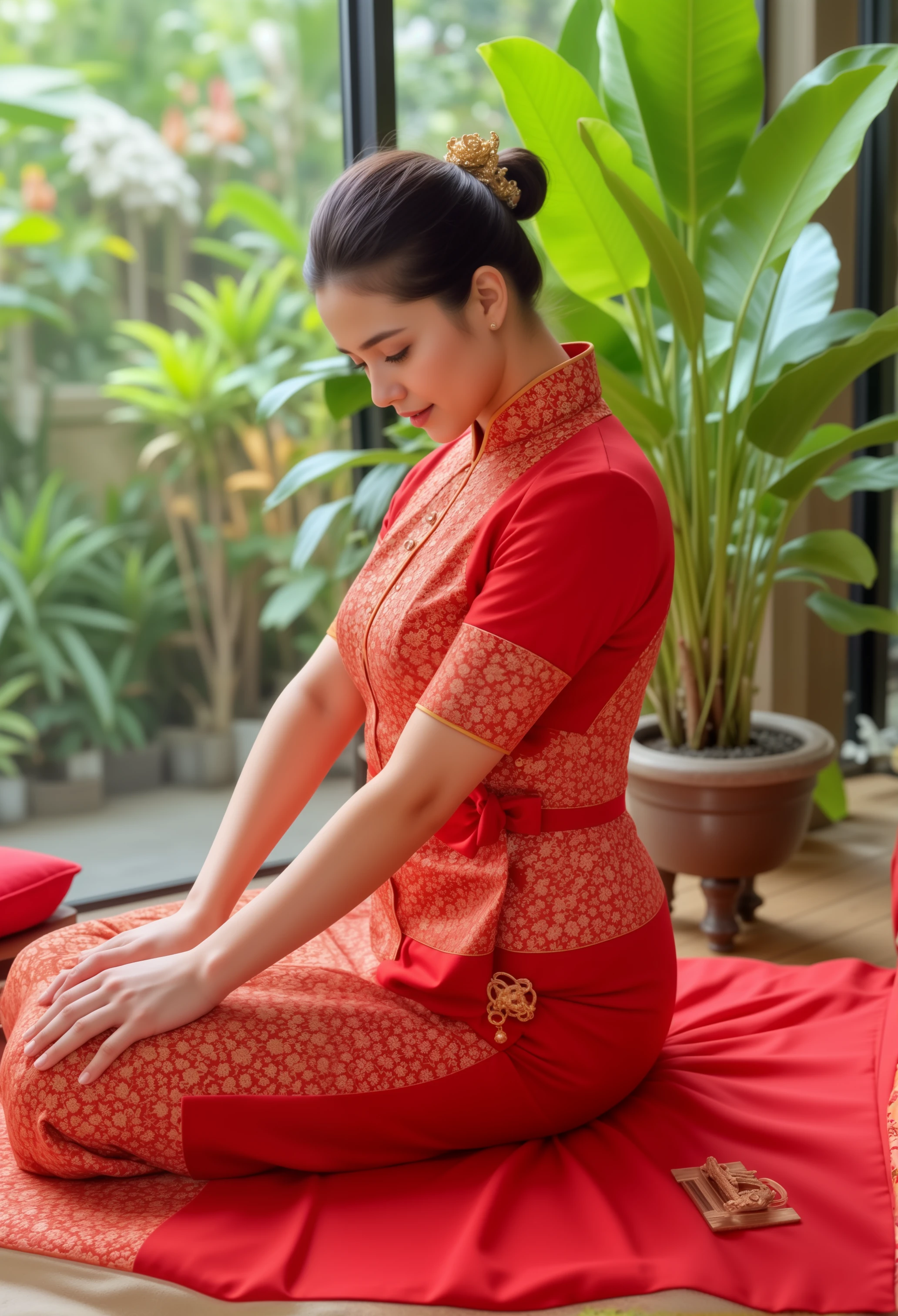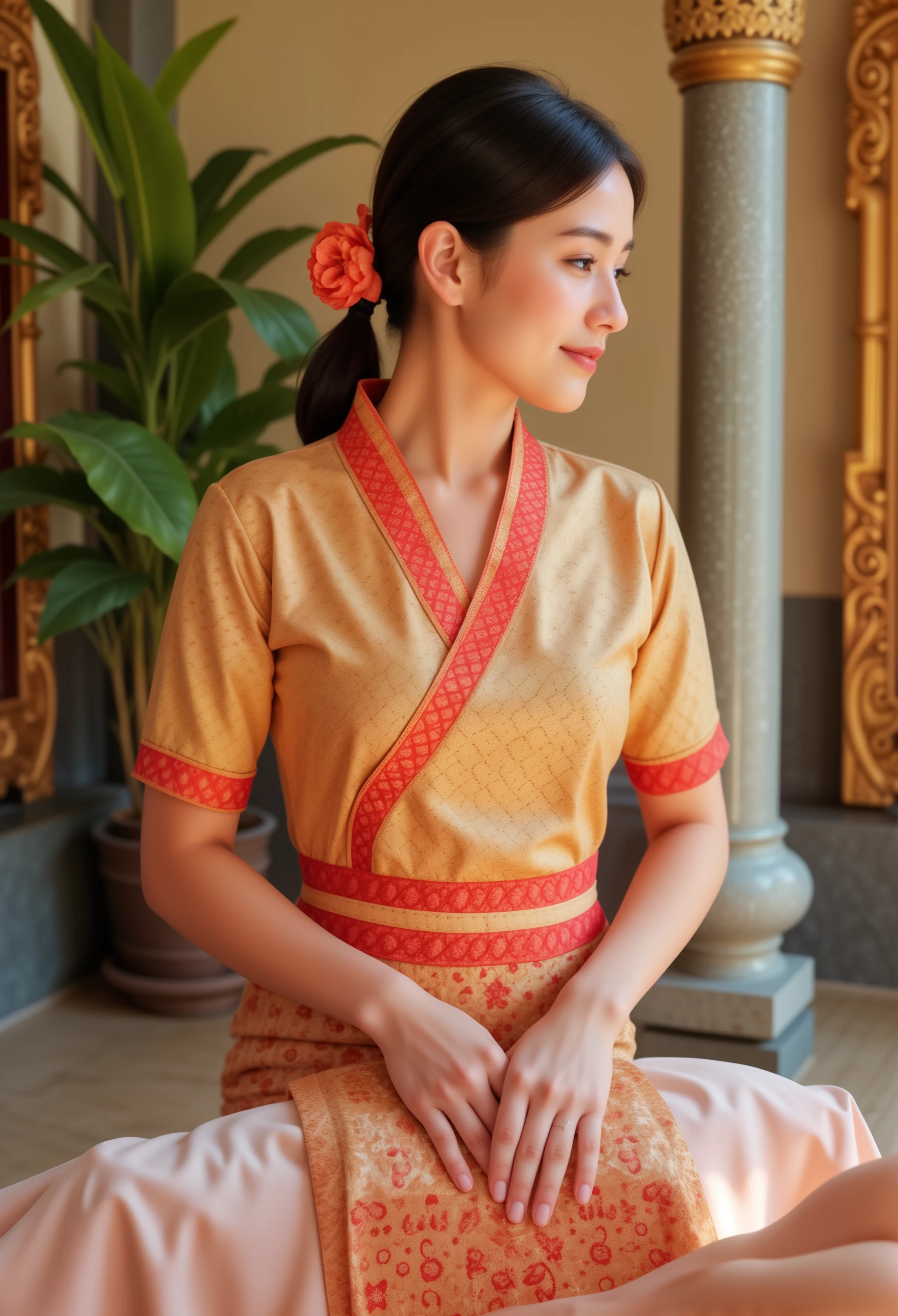 Or, if you can't think of a prompt, let ChatGPT help you, but make sure to start with "nuadthai, thai massage dress" and then add whatever you like.