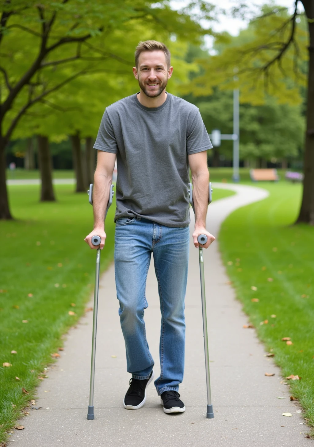 You can promt with for example "walking with acratch" or "walking with two acratch" It will produce two crutches for your image. However If you specify "one acratch" it may produce only one, who knows.