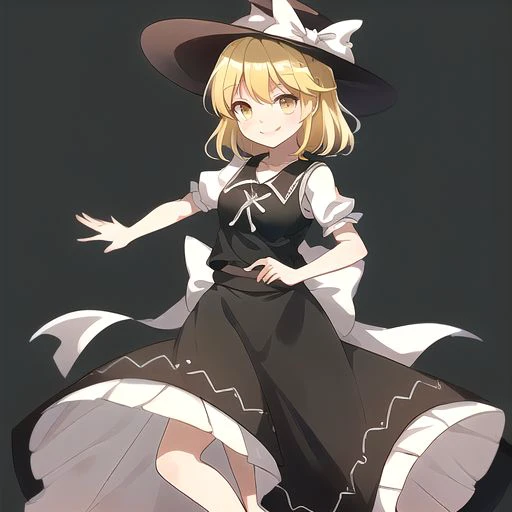 1girl, solo, yellow eyes, yellow hair, bow, hat bow, socks, black footwear, black skirt, short sleeves, black vest, white sleeves, frill skirt,