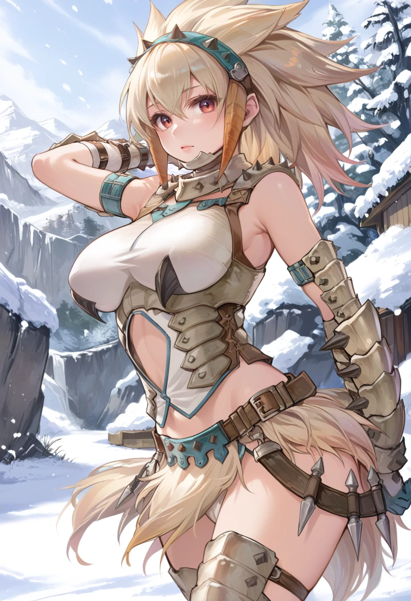 Tags (clothes): barioth x gunner armor, white headband, white thigh boots, white fingerless gauntlets, white pelvic curtain,
