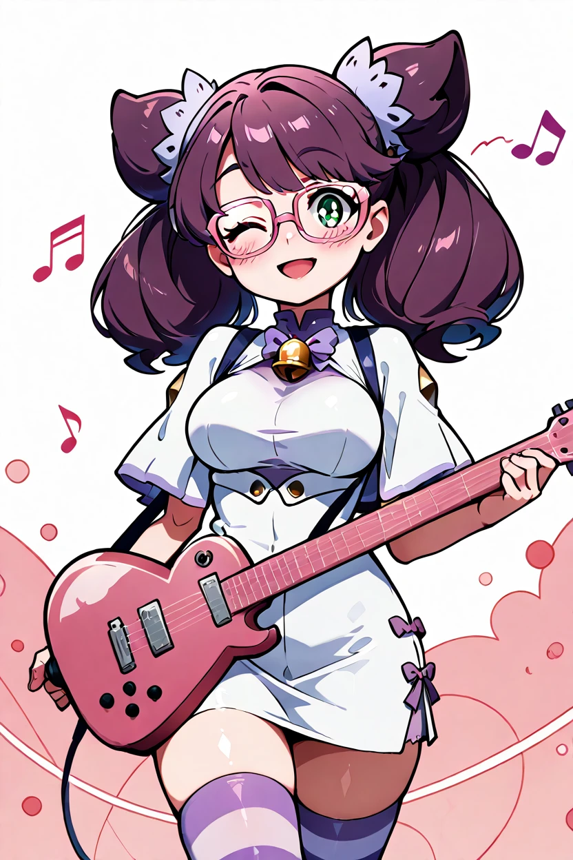 zzWicke, green eyes, pink-framed eyewear, glasses, purple hair, big hair,