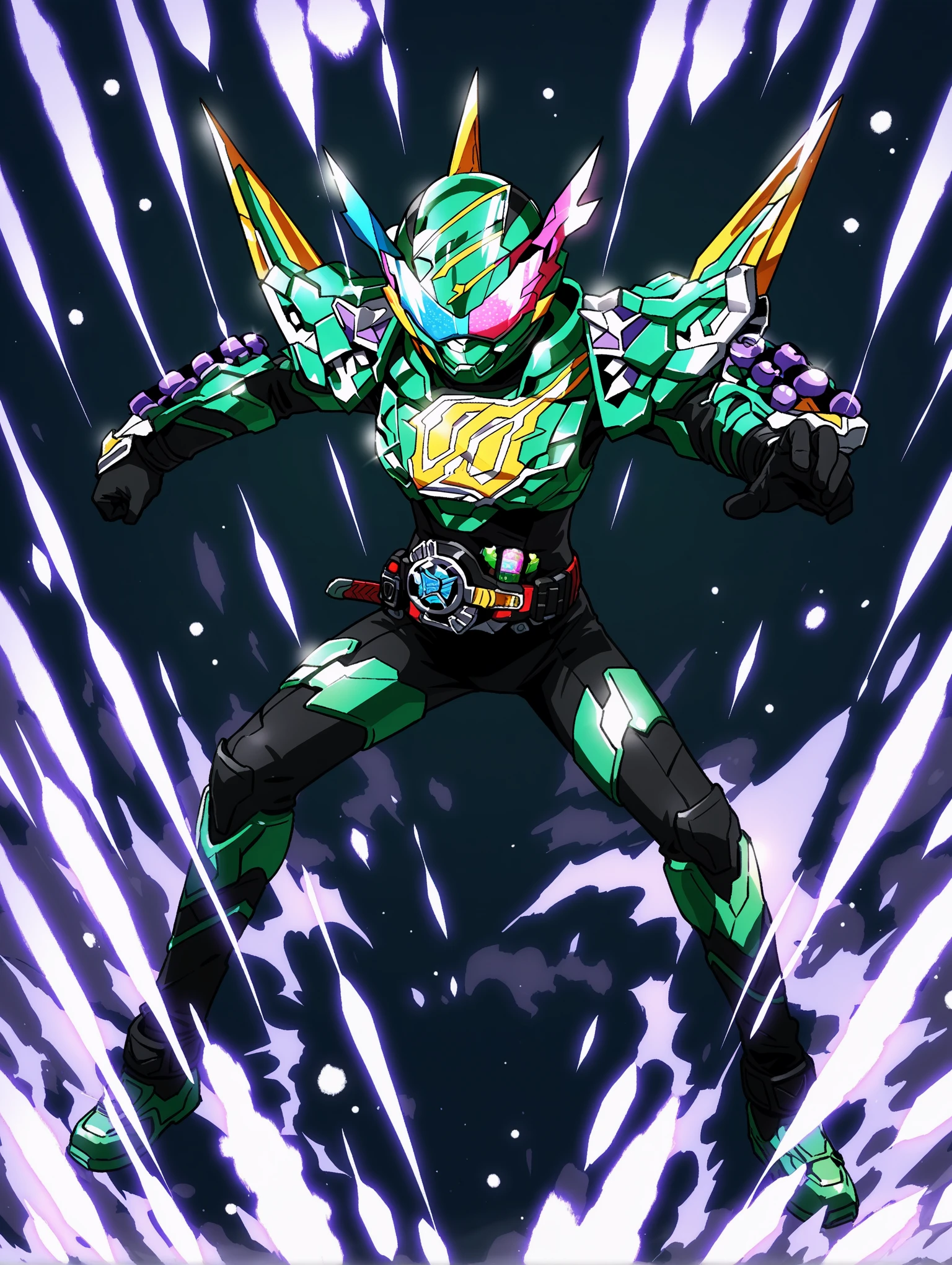 full body, solo, blue armor, tokusatsu, bodysuit, helmet, rider belt