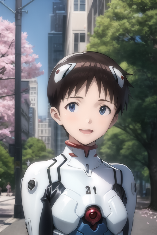 To generate Shinji, use the trigger word ikarishinji; it is also recommended to use tags such as male focus and (1boy:1.2) or (1boy:1.4). Use weight around 0.6