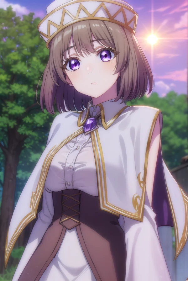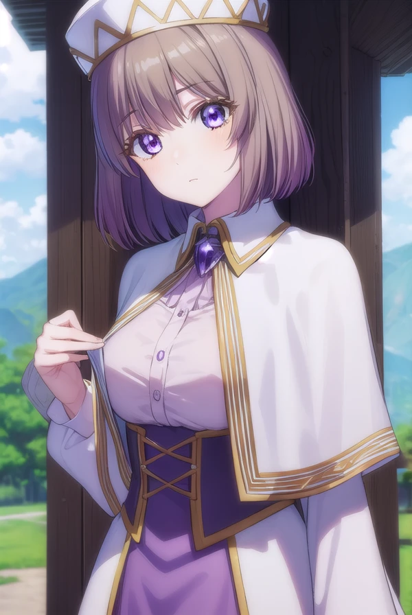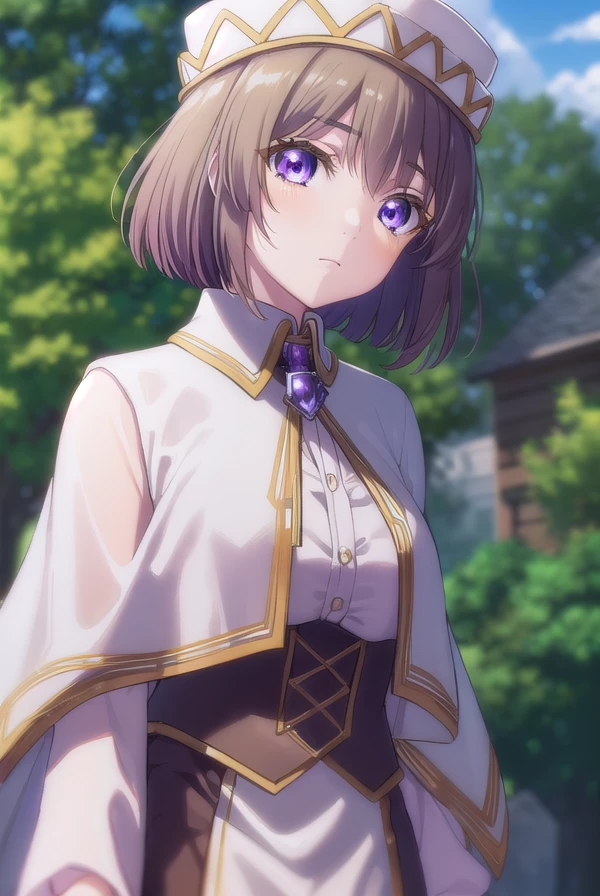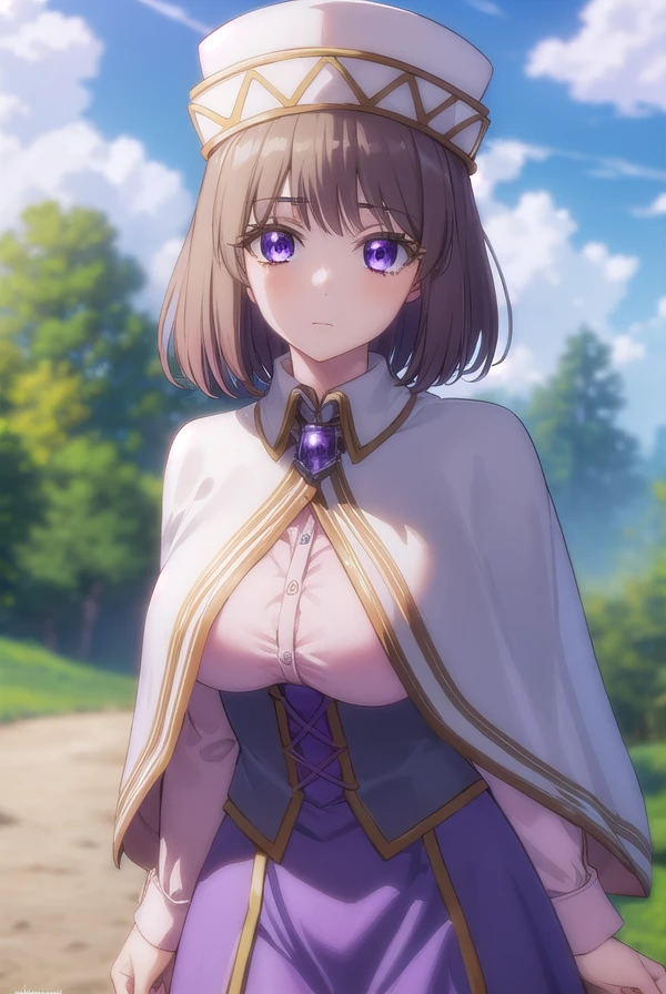 alicia edelsia, short hair, brown hair, (purple eyes:1.1),