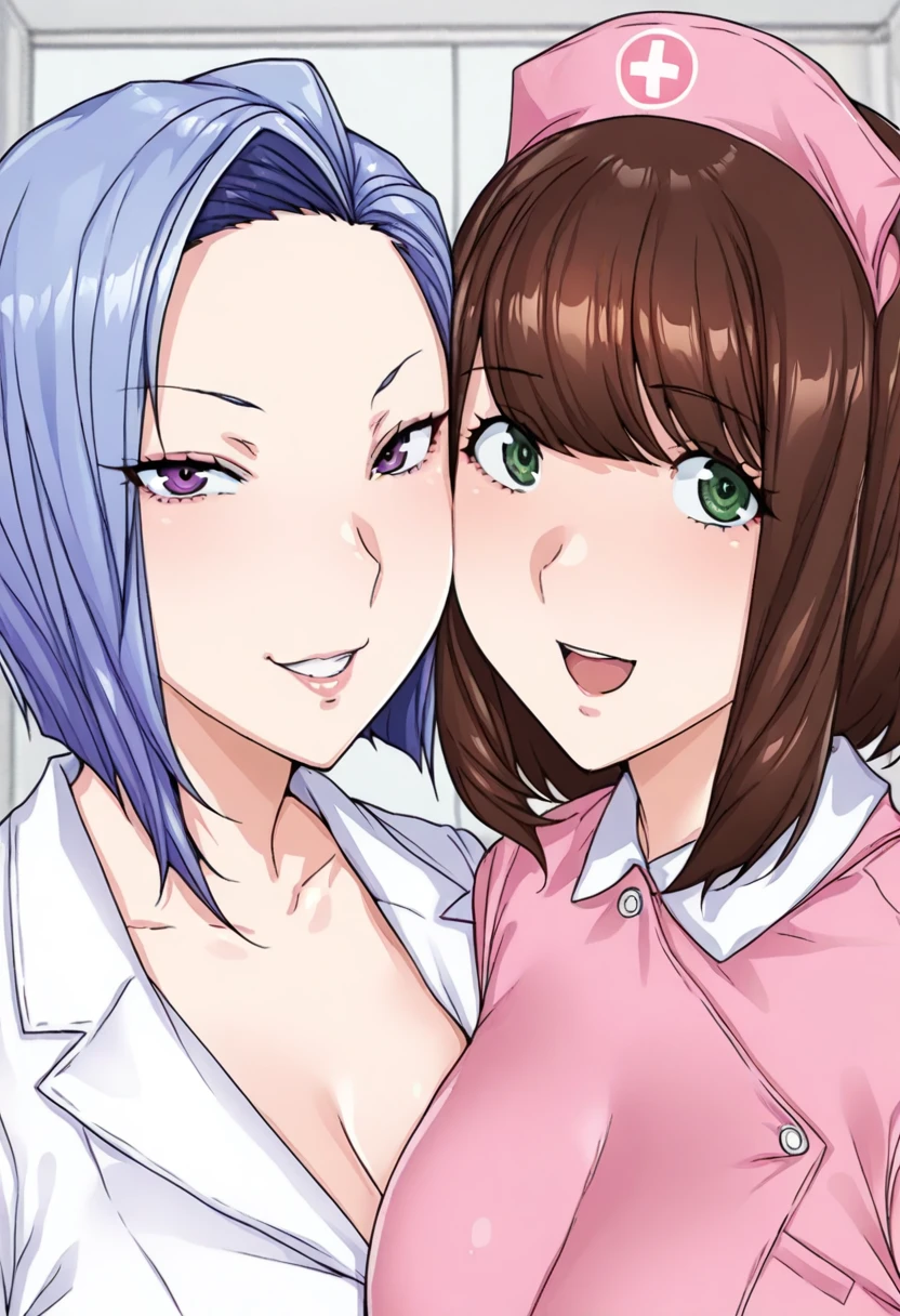 The two beautiful MILFs fighting for your affection, Michinaga Mizuki and Sakaki Makiko from the doujinshi Disqualified Mother / 母親失格 by the amazing artist Akikusa Peperon / 秋草ぺぺろん
