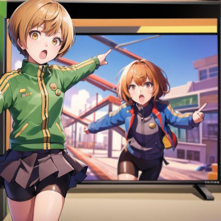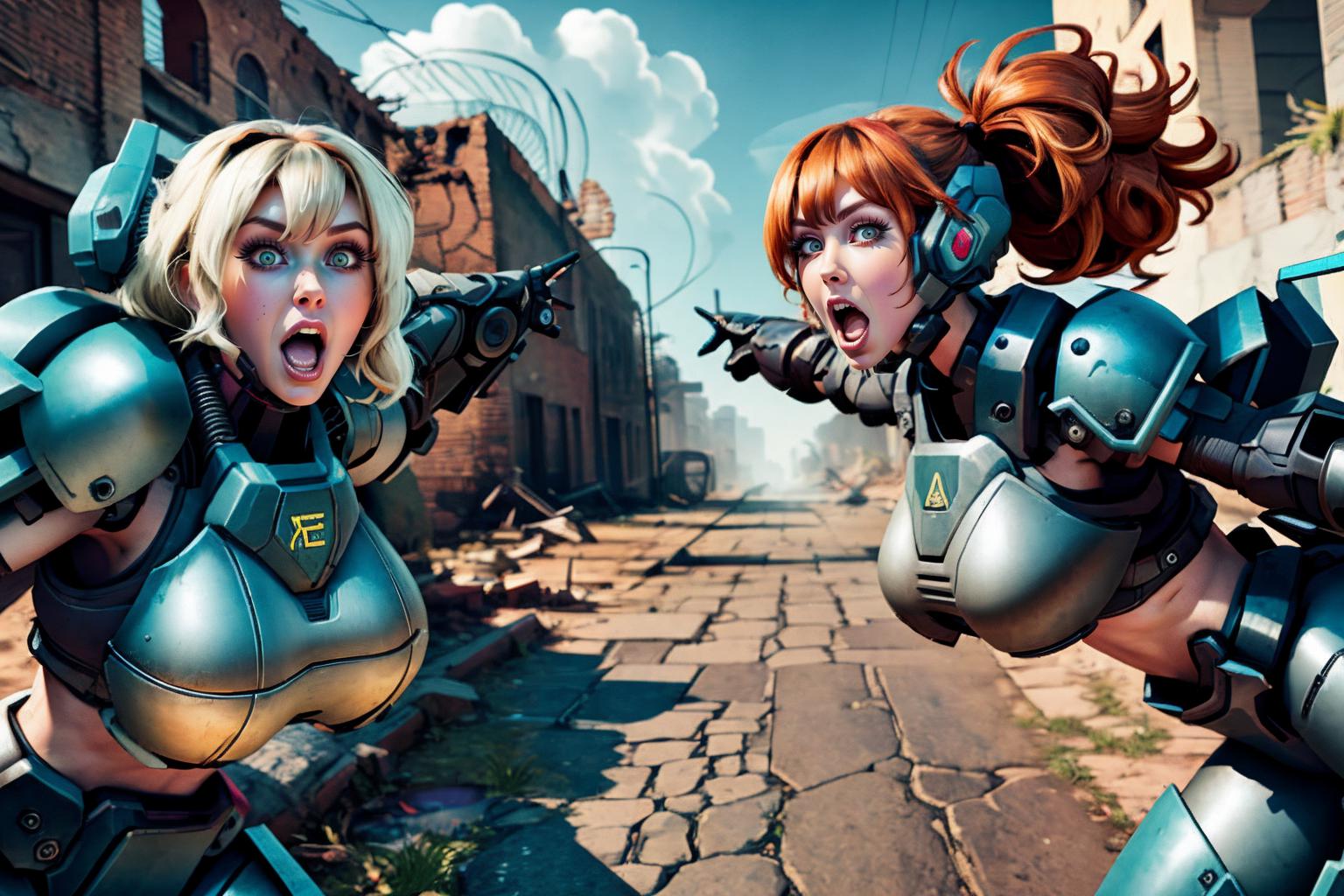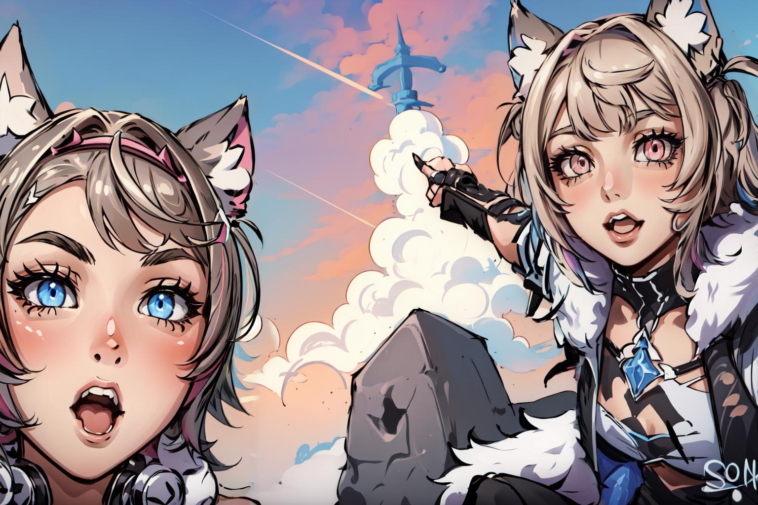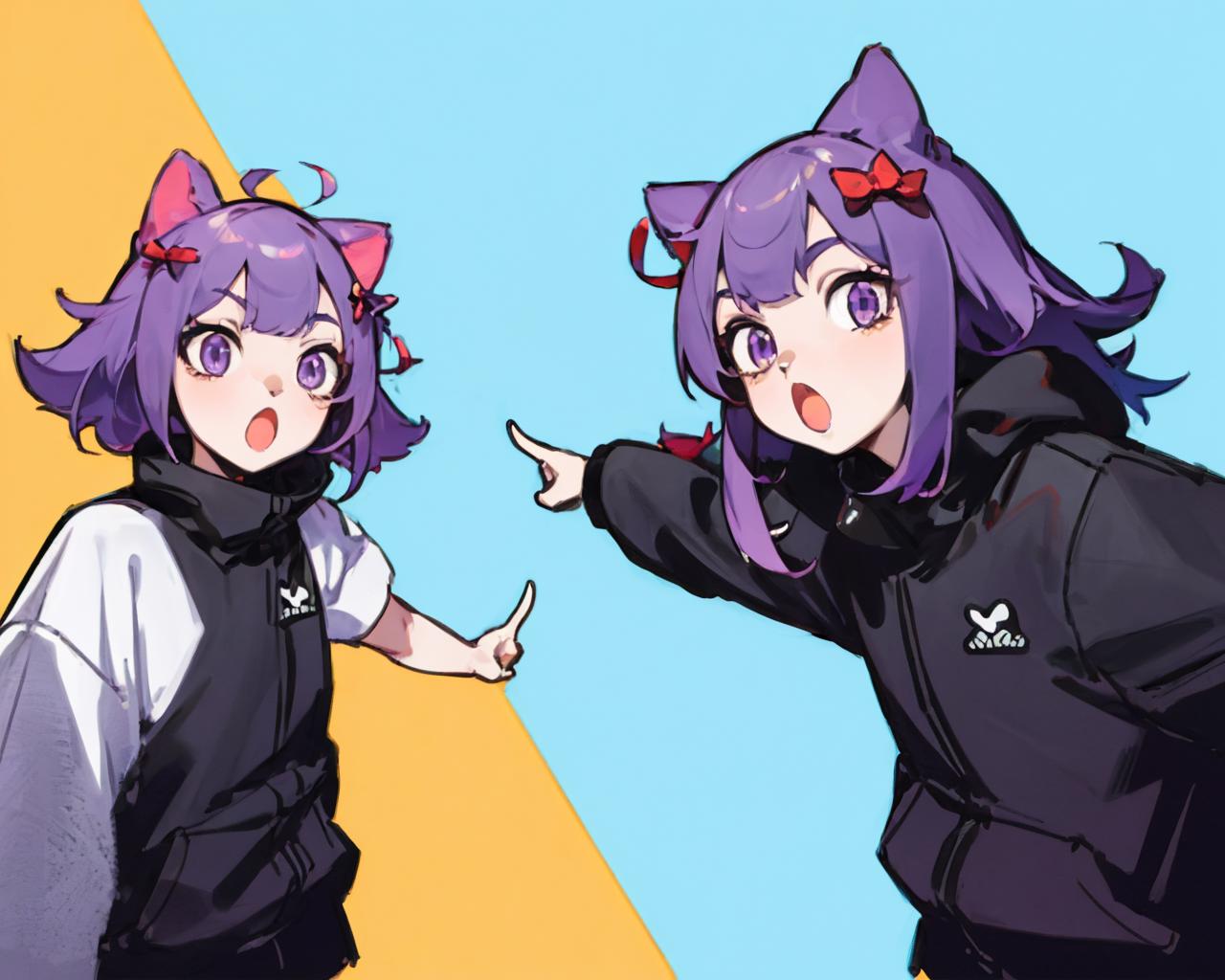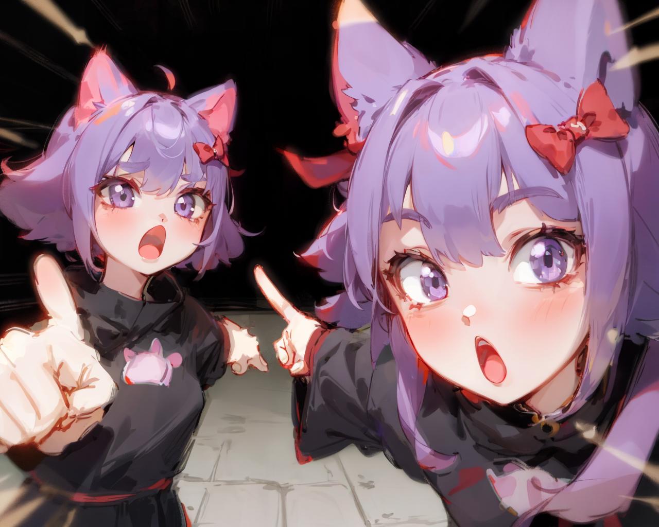 recommend prompt: 2girls, duo, pointing, open mouth, :o
