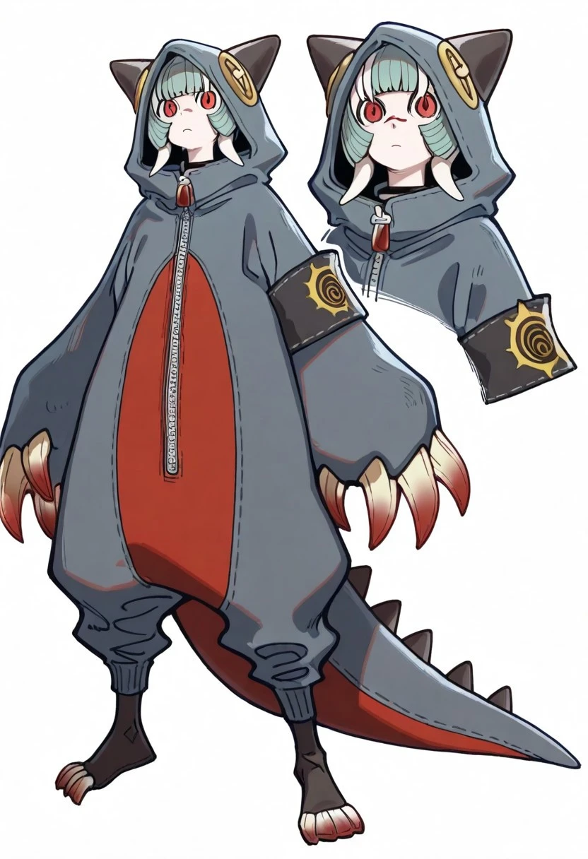• kigurumi outfit, kigurumi, red inner panel, baggy clothing, long sleeves, oversized sleeves, black armband,