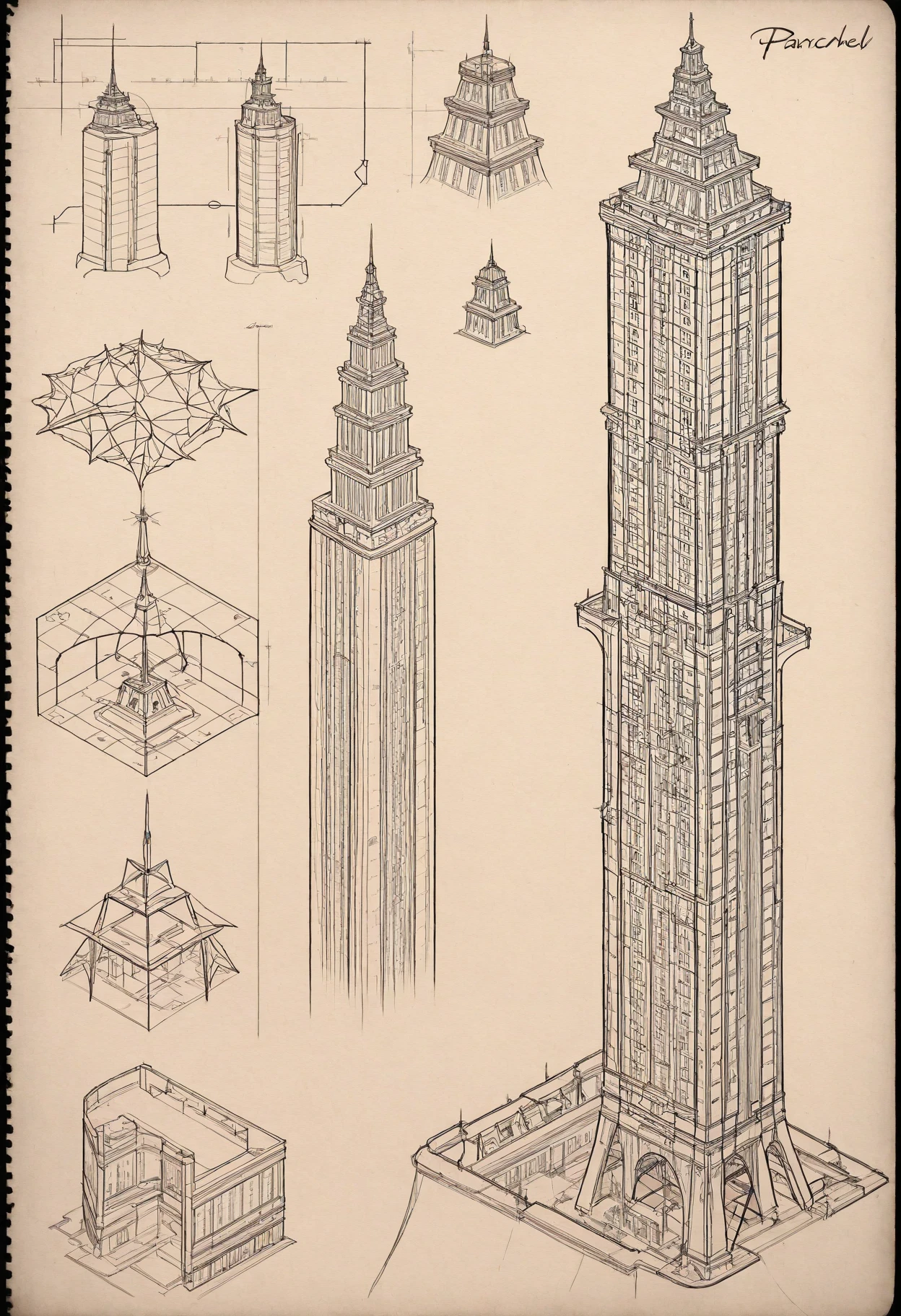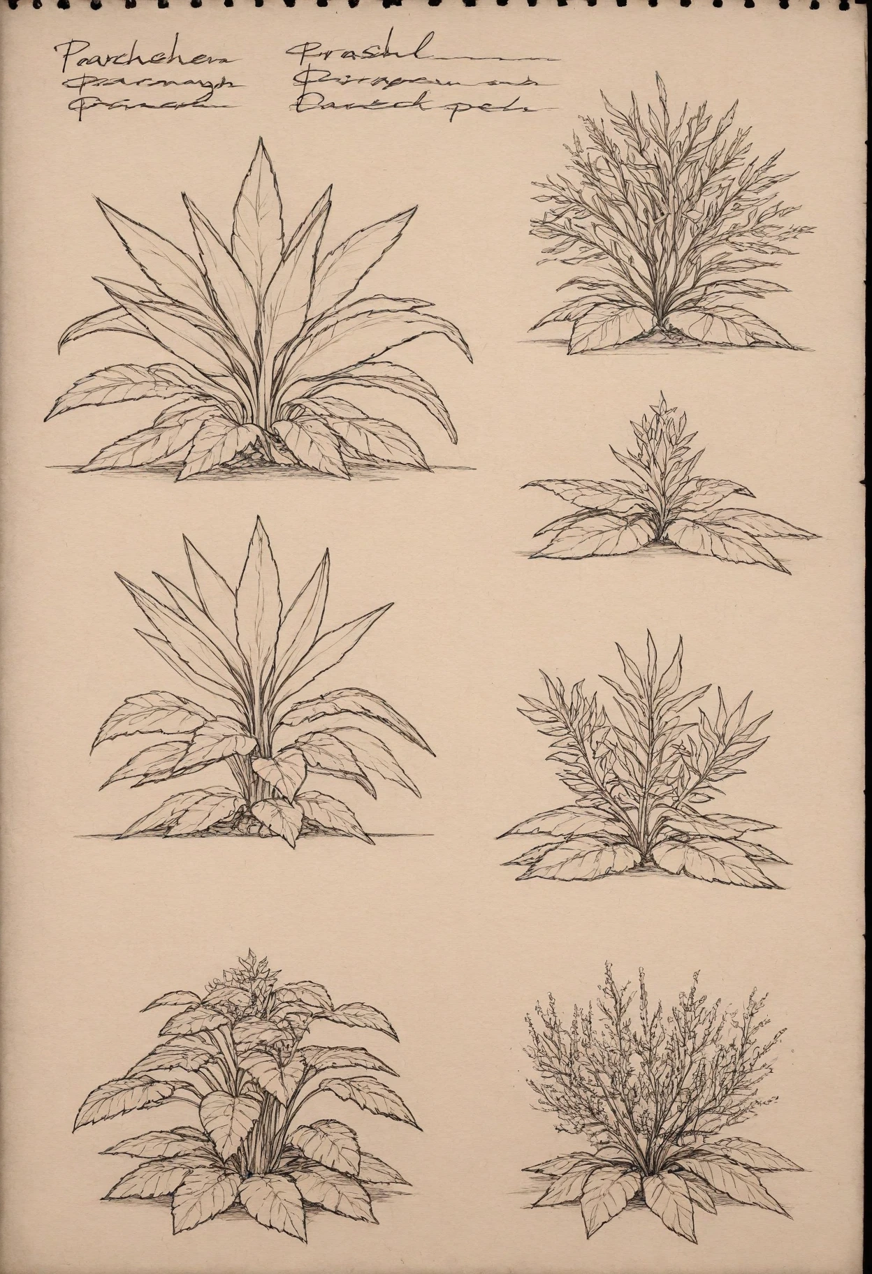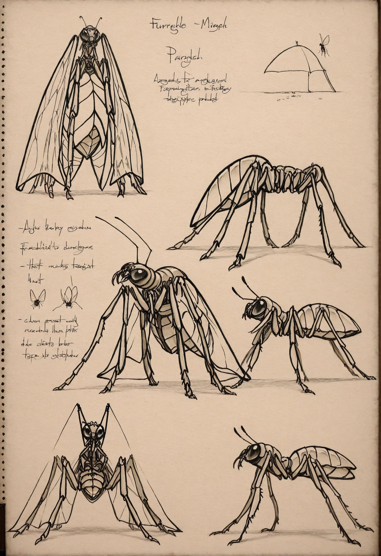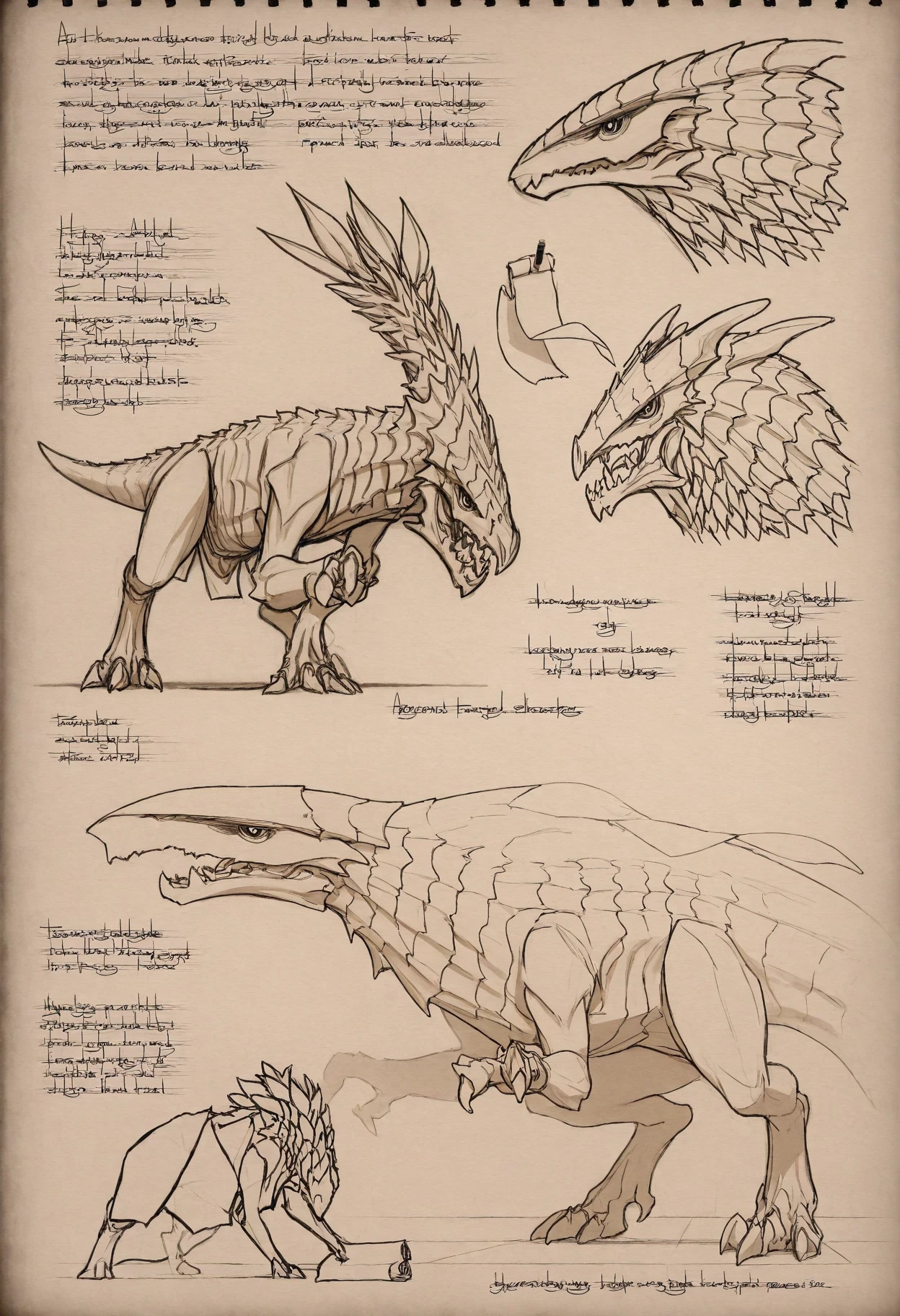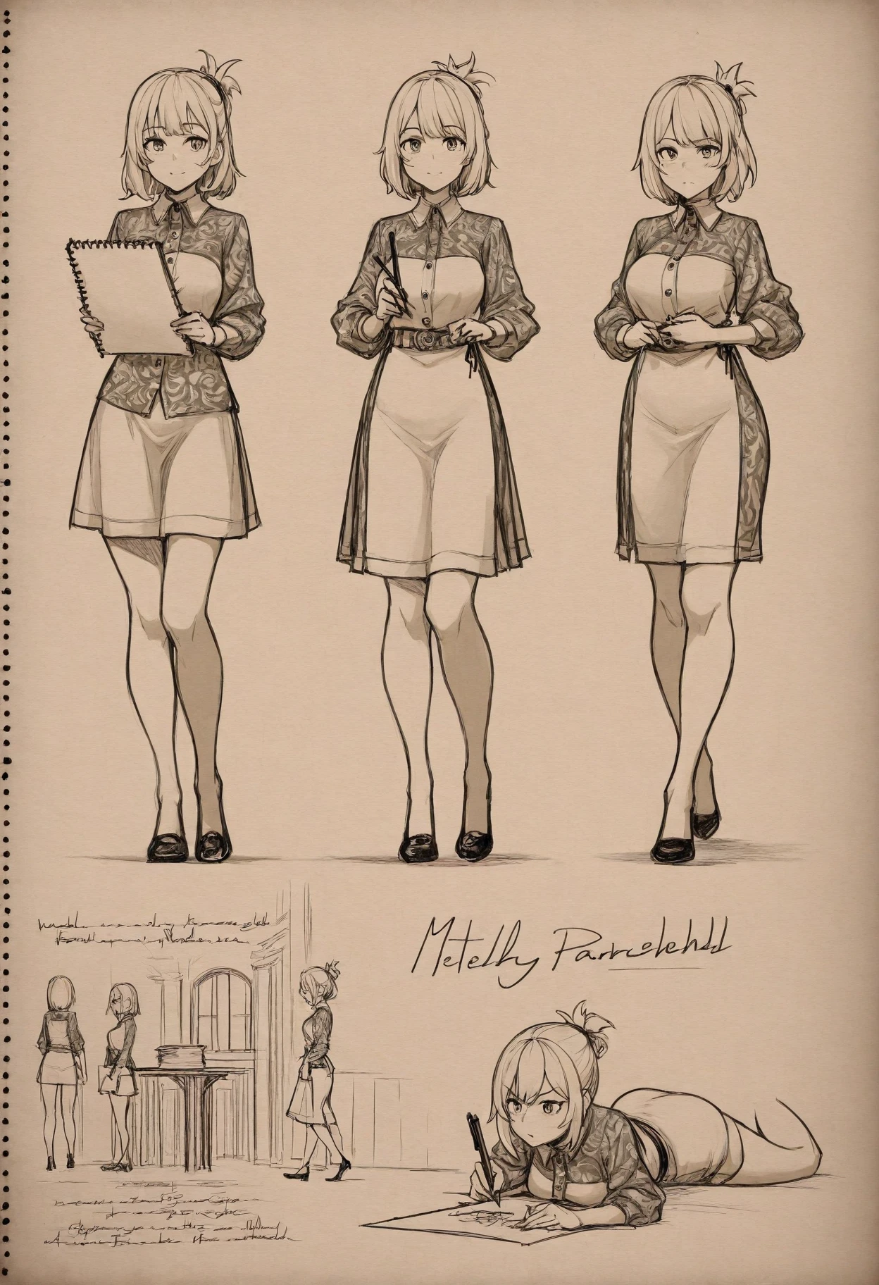 Trigger Word: sketchbo0k, sketchbook, parchment paper, pencil drawing, character sheet