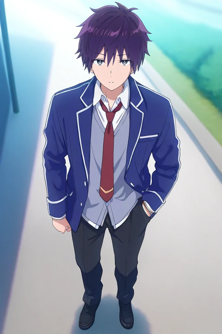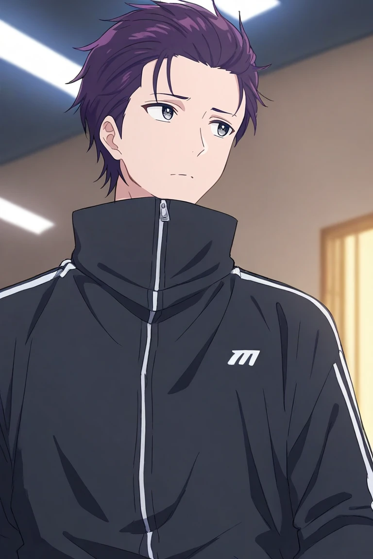 hiroto shinohara,grey eyes,purple hair,short hair,bangs