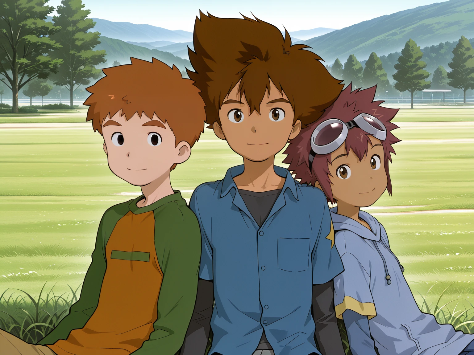 I’ve been planning this LoRA for a long time. It’s based on my personal favorite Digimon movie—tight storytelling, flawless art style. At first, I was going to make it just about Daisuke, but I’ve always had a soft spot for senpai–kouhai relationship, and I really love the ships “Daisuke × Taichi” and “Koushirou × Taichi.” So I figured out a way to include them all. The outfits are based on the original designs, though generating images with multiple characters sometimes takes a few retries.
