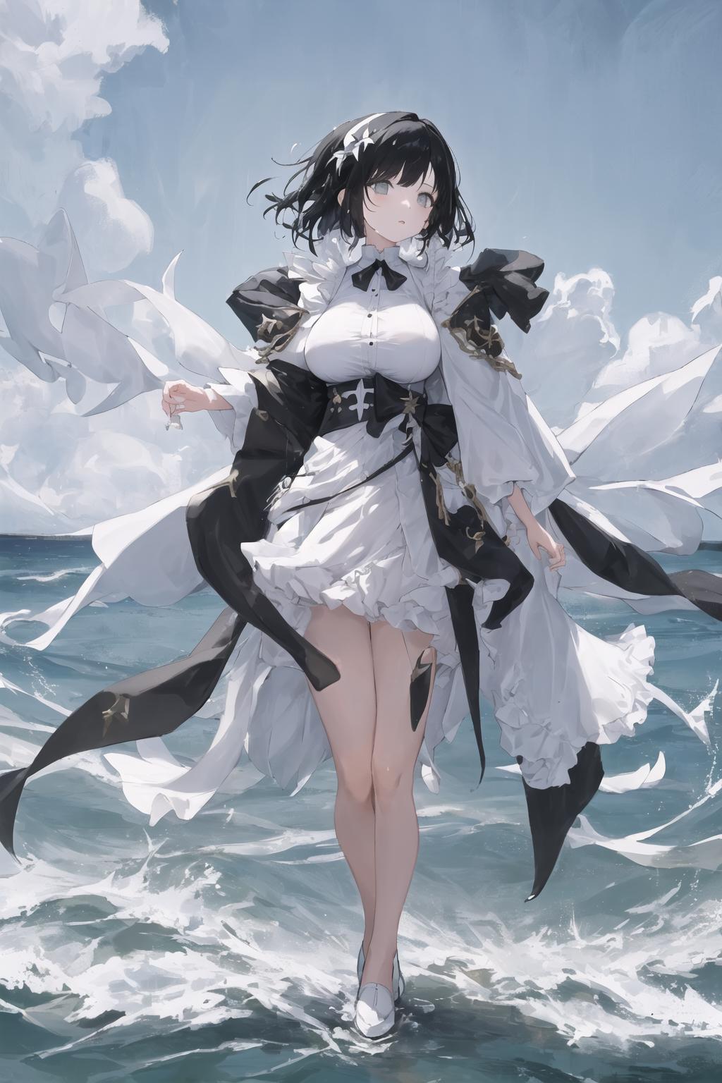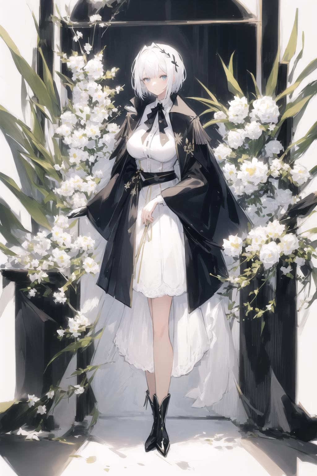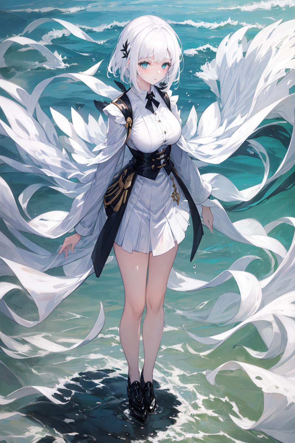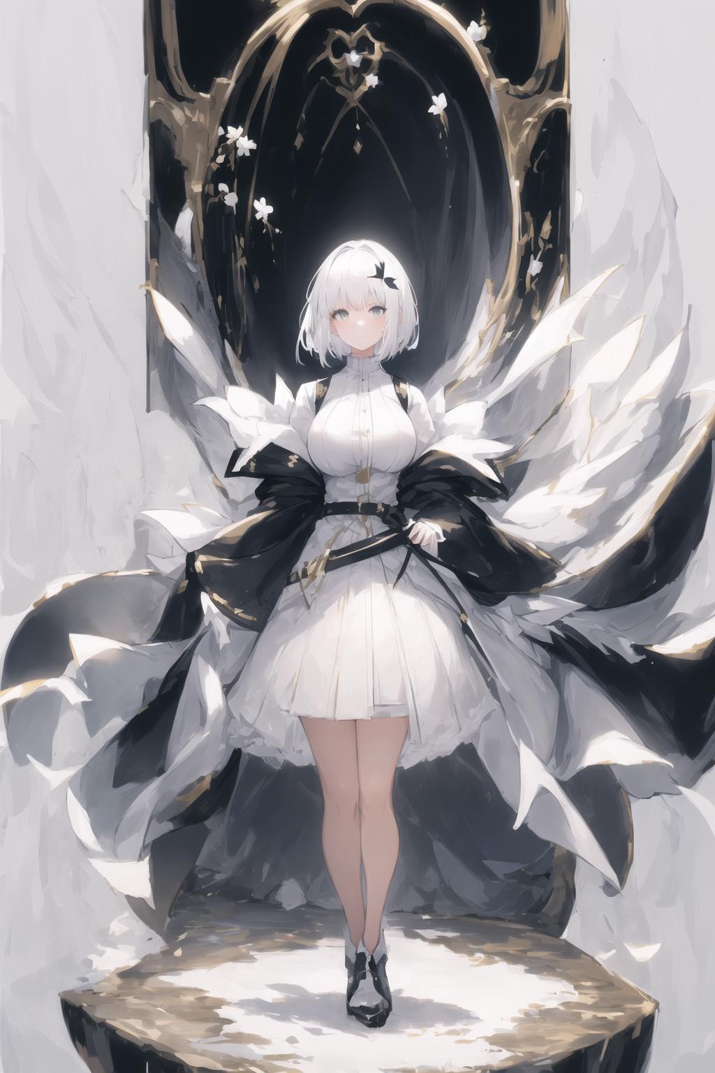 -->Prompts: white background, originVV, 1girl, white skirt, white uniform, magician