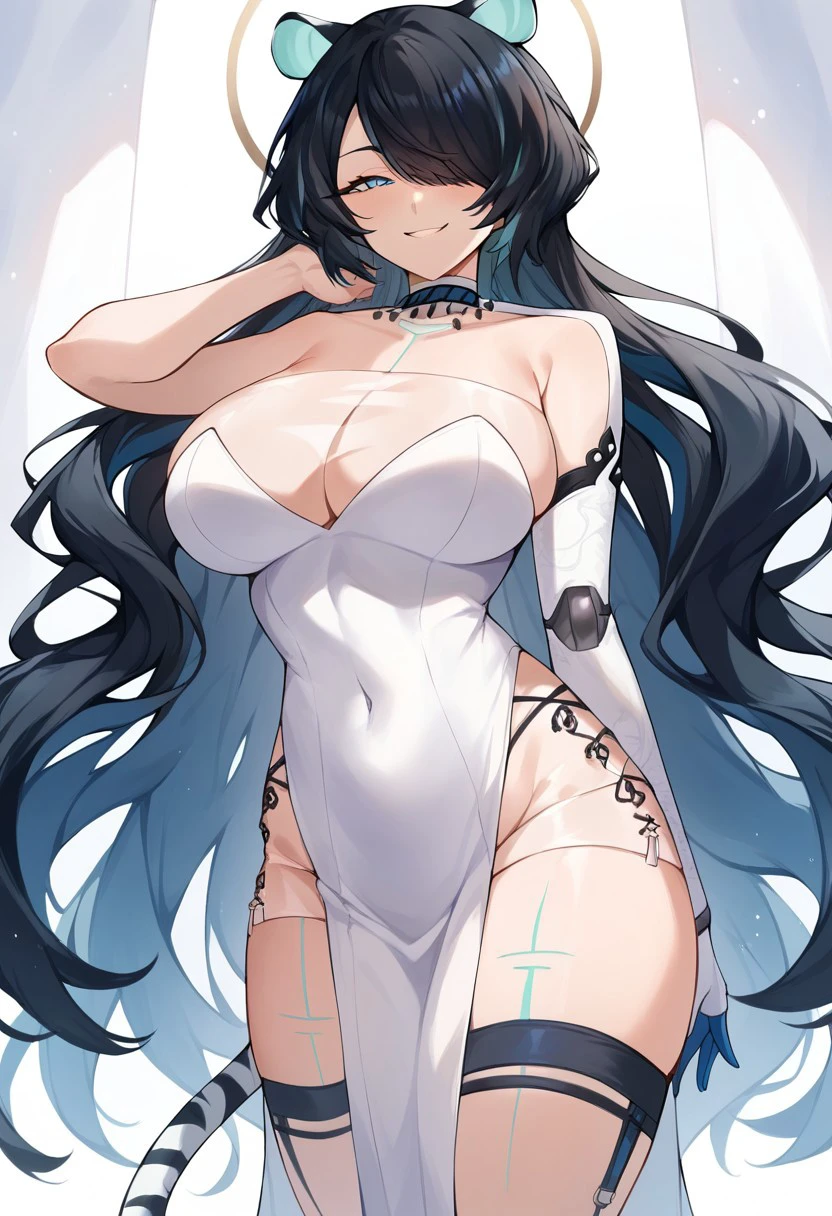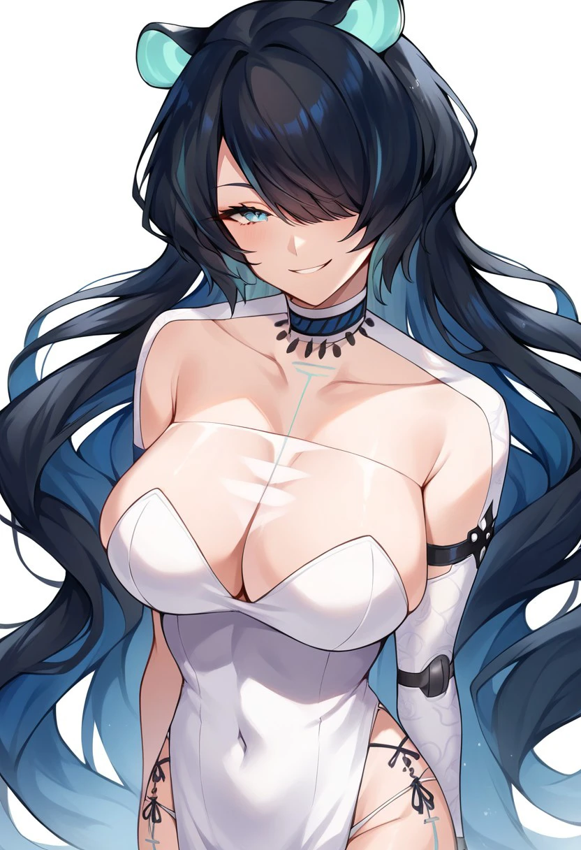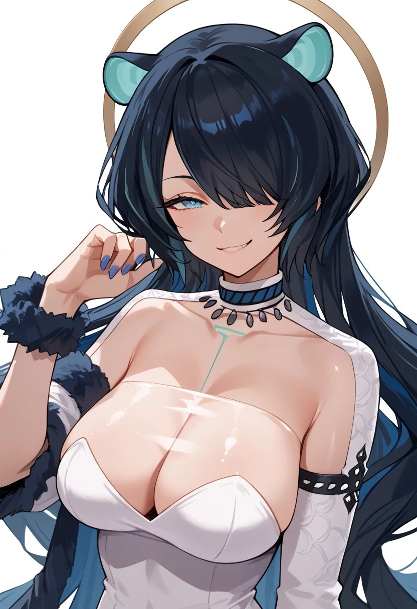 Tags: Erina Makina, Large breasts, black hair, multicolored hair, blue hair, blue eyes, panther ears, hair over one eye, long hair,