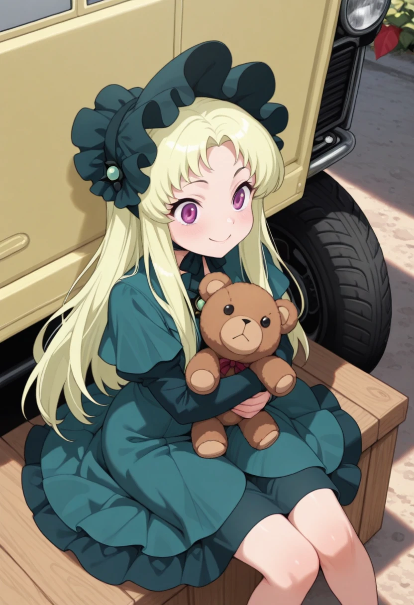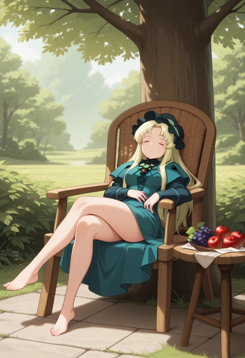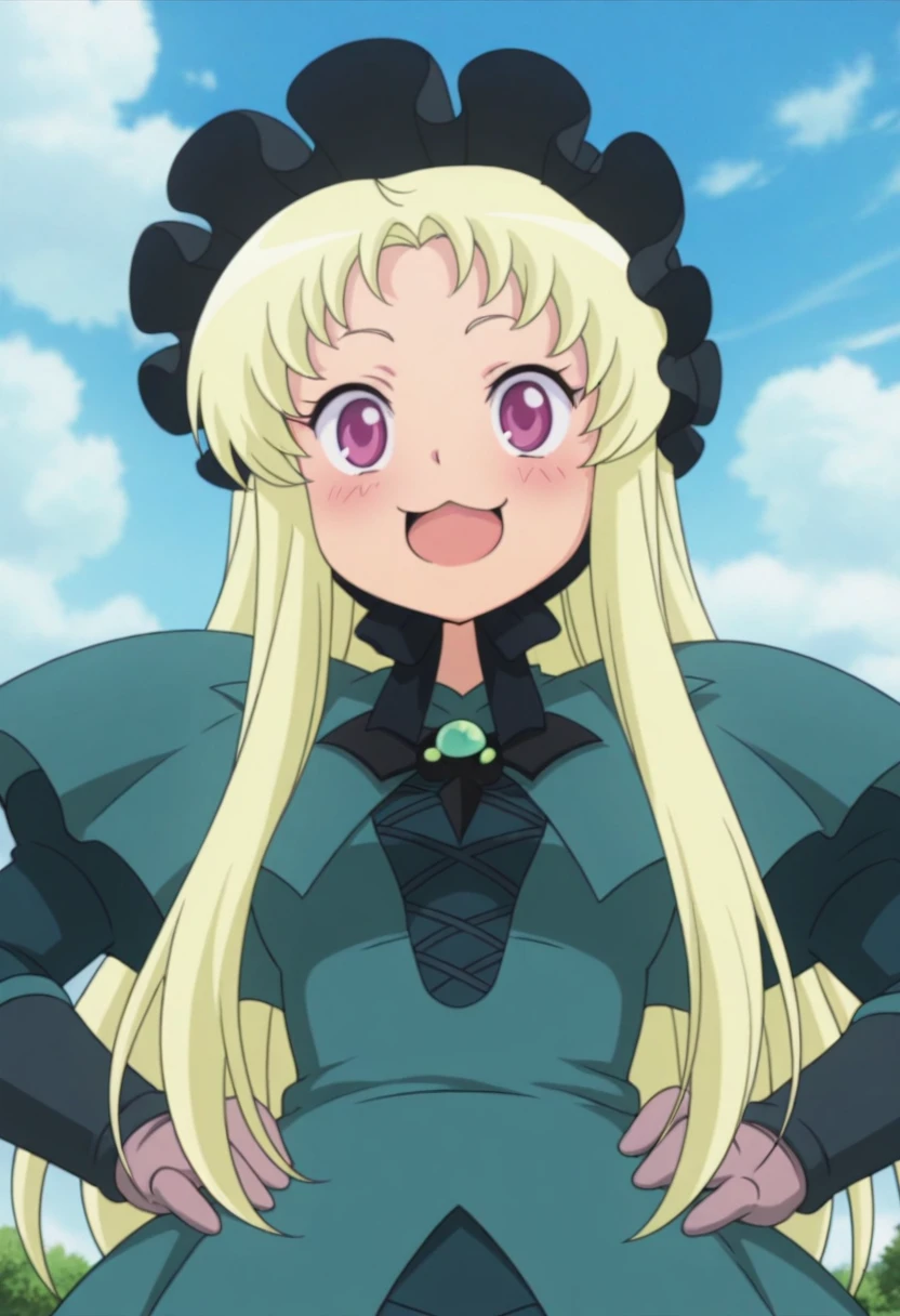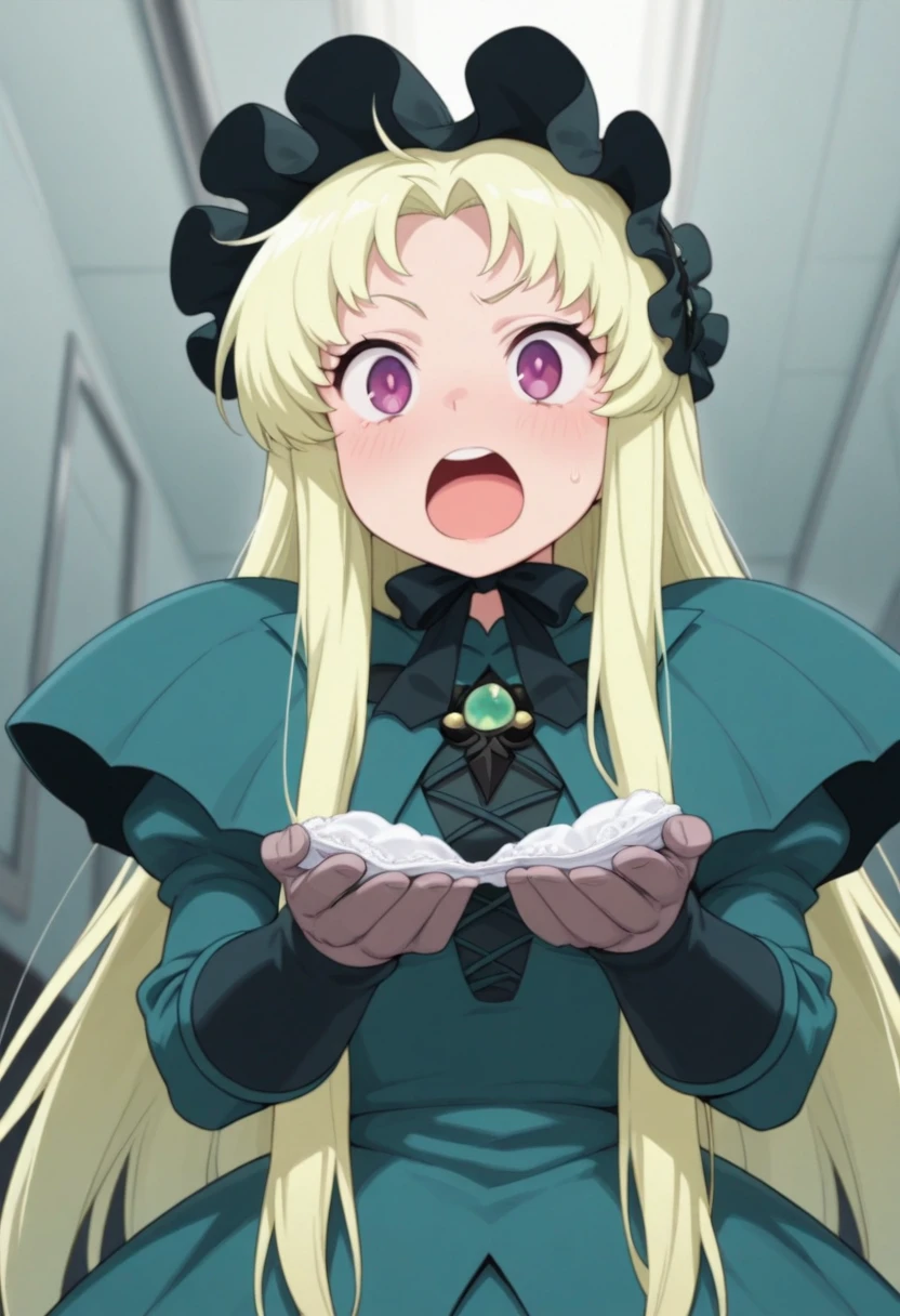 Trigger Words: salome, long hair, greenish-blonde hair, purple eyes